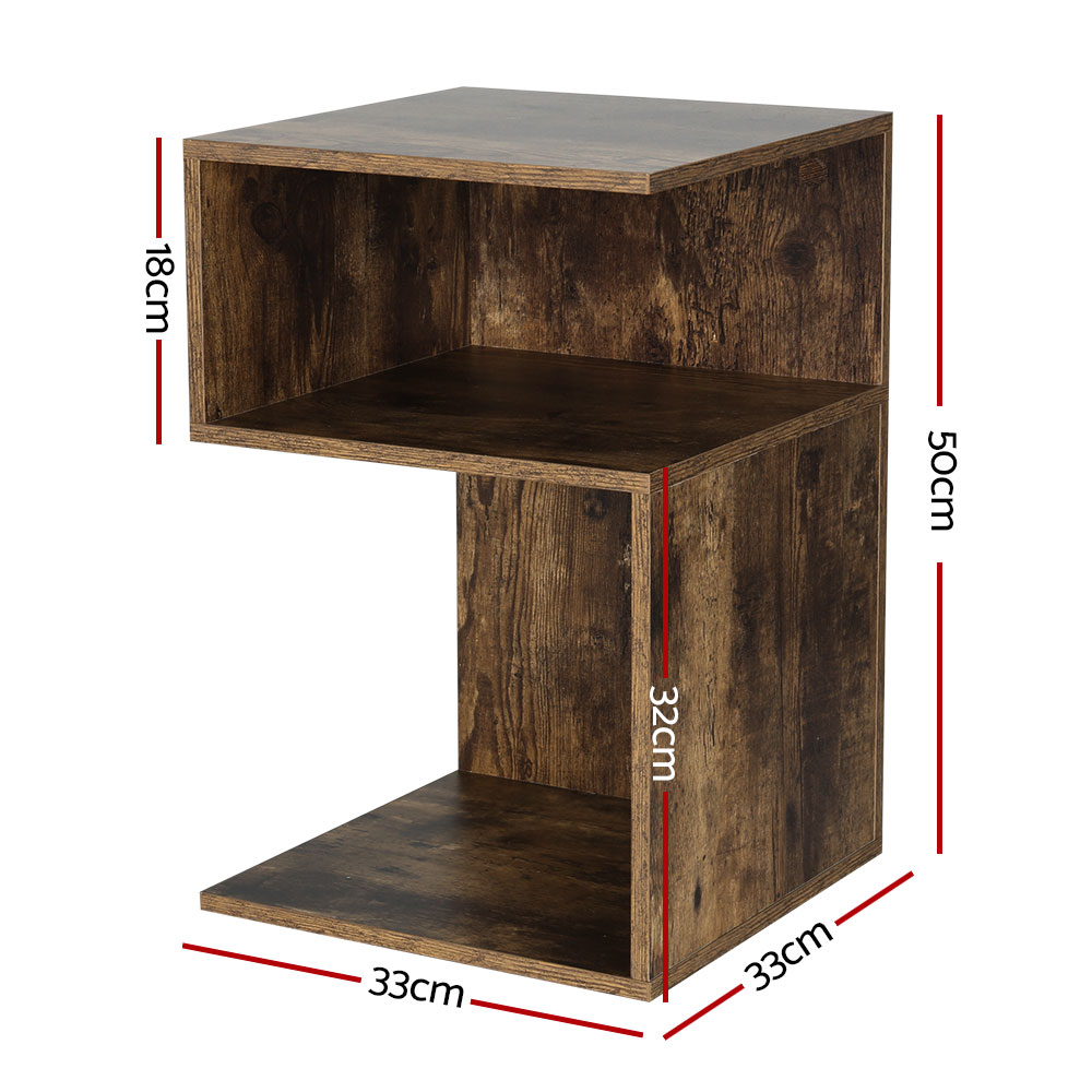 Artiss Bedside Table Shelves Side End Table Storage Nightstand Rust Oak UMENI