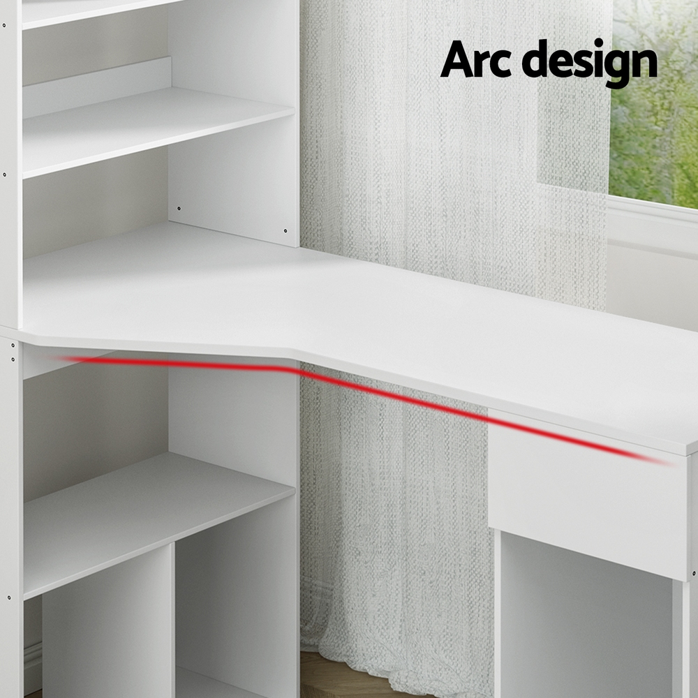 Simple and effective. Our Artiss Computer Desk is designed to enhance your work efficiency and yet add a stylish touch to your home or office décor with its neutral white hues. On one side, a large 5-tier open shelving with backstops is perfect for books, files, binders and all your reference essentials. Adjoining the shelving is a desk constructed from exceptionally thick 15mm thick particle board with paper finish with a wide top that provides more than adequate workspace for your computer and other working paraphernalia. It even has a spacious drawer with anti-rust runners and a space dedicated for storing your tower computer. The 2-in-1 computer desk is your reliable work companion for years to come.