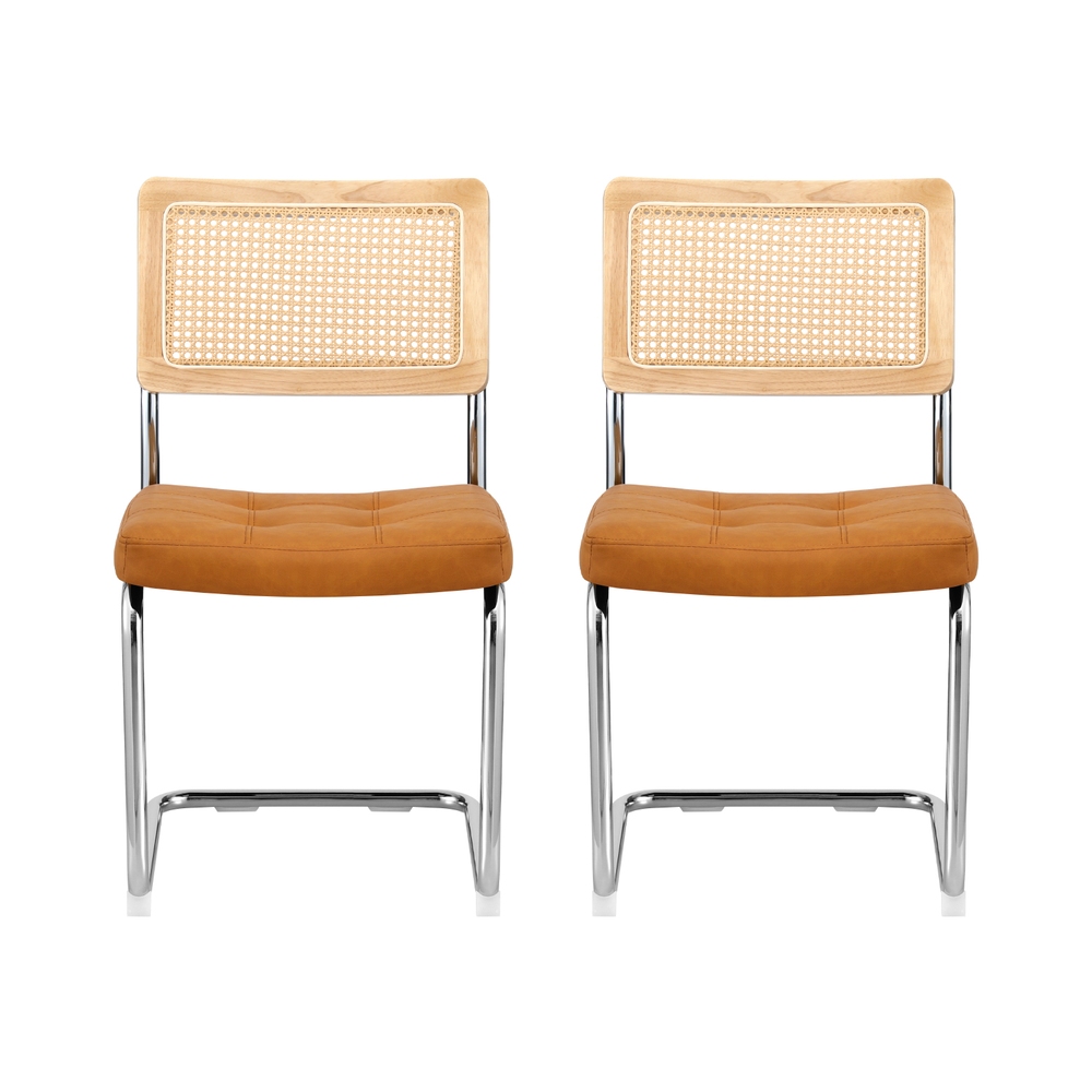 Artiss Dining Chairs Set of 2 PU Leather Rattan Cantilever Brown
