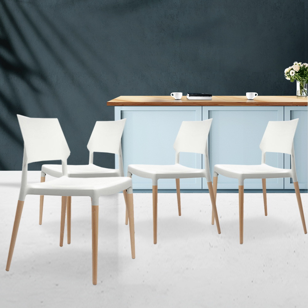 Artiss Dining Chairs Set of 4 Plastic Wooden Stackable White