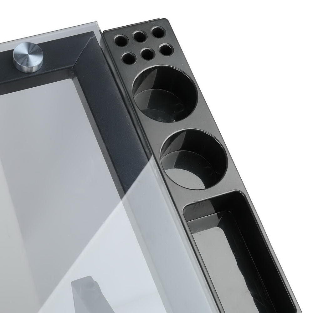 With its pencil-edge tempered glass desk top, the Drawing Desk is assured of safe use with utmost transparency. The removable side trays and drawers also help to provide useful assistance with all your working and drawing essentials storage. As to the frame, the black powder-coated finish steel-constructed structure is designed to be durable and steady while the four castors, including two with locks, allow you to move the Drawing Desk easily. Not least, the adjustable desk top lets you set your preferred working angle with equally reliable hardware.