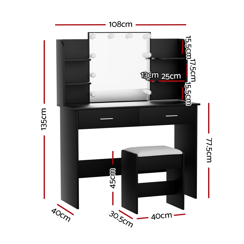Artiss Dressing Table Set Stool 10 Led Bulbs Black Dulcea