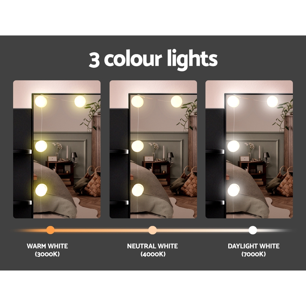 Feel like a star straight out of Hollywood with the Artiss Dulcea Dressing Table. Packed with generous storage and other convenient features, your new beauty routine will be a breeze. Made from quality MDF particleboard with a melamine finish, the table is built to last. The Hollywood-style makeup mirror is surrounded by bright LED bulbs for the perfect illumination. Choose from warm, neutral and daylight white light so you can always look stage-ready. The vanity features open shelves that you can use to display trinkets or beauty products. Two generous storage drawers with silver handles open smoothly on anti-rust runners, giving you instant access to your beauty essentials. A foam-padded PU leather stool allows you to sit comfortably while applying make-up or skincare and can be neatly tucked away when not in use. Easy to install and even easier to maintain, you’ll love getting ready for the day in front of your new Artiss Dulcea Dressing Table.