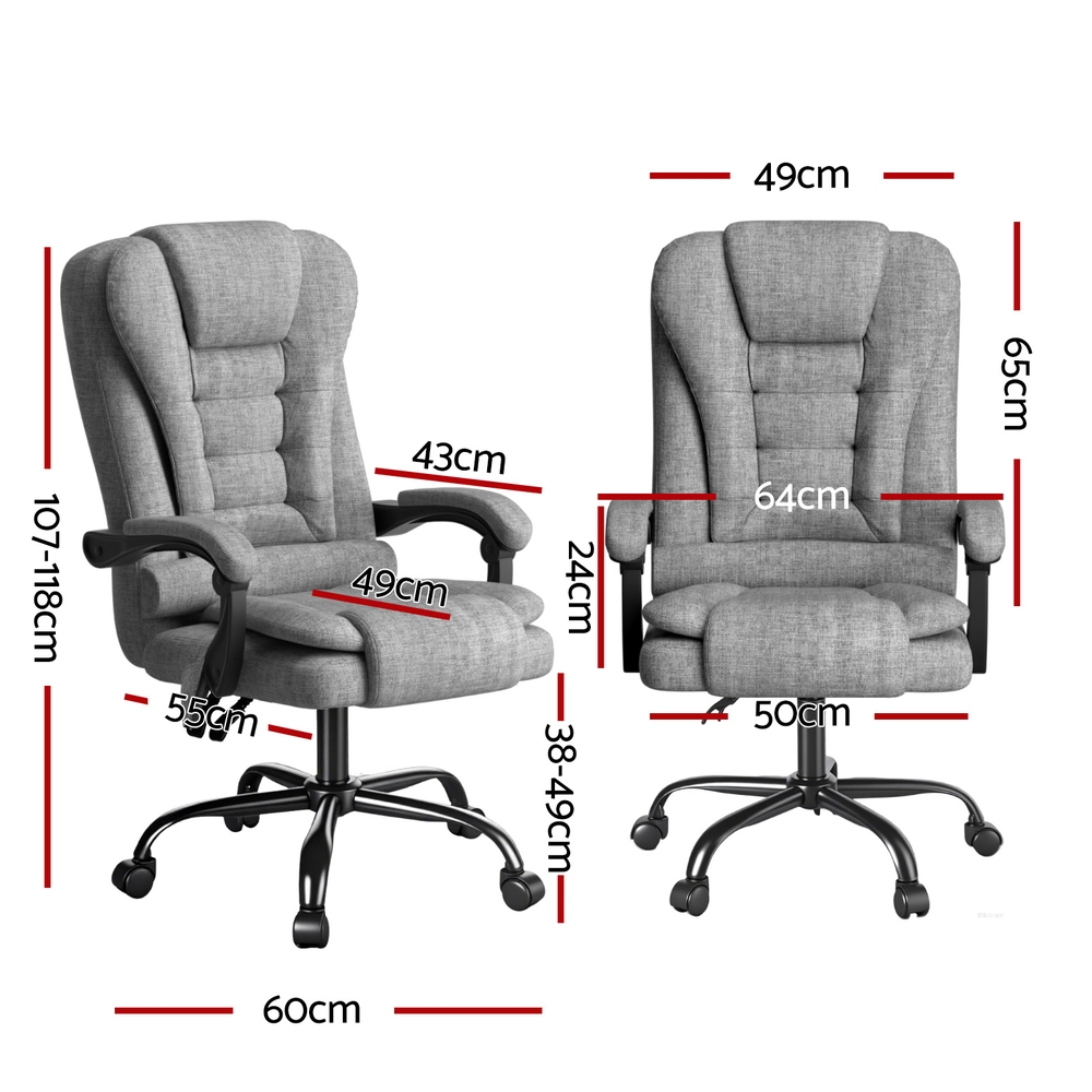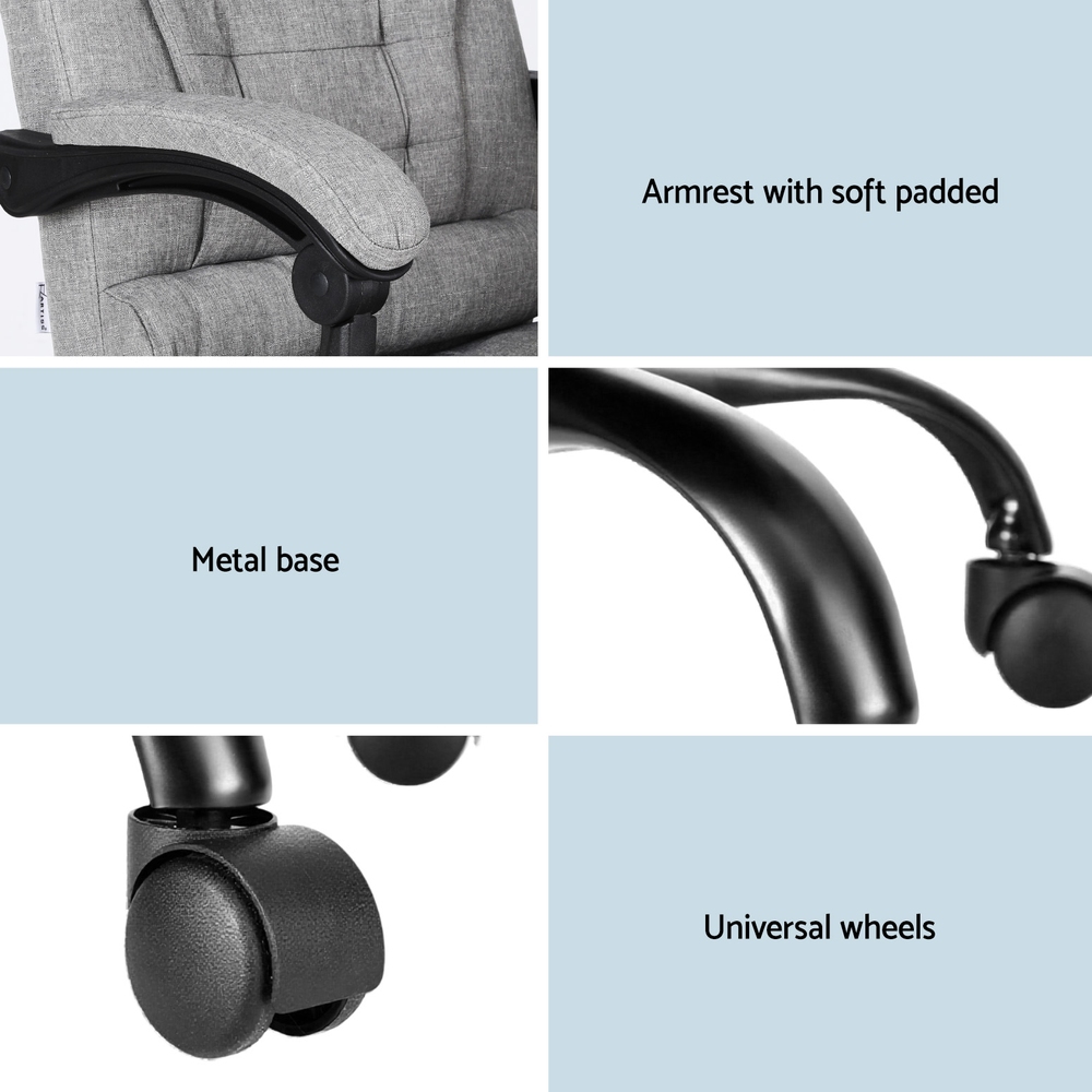 Upholstered in breathable linen fabric, this chair combines durability with a sleek, modern look. Easy assembly means you can set it up quickly and get straight to work. Whether you’re at the office or working from home, the Artiss Massage Office Chair delivers comfort, functionality, and style – all in one!