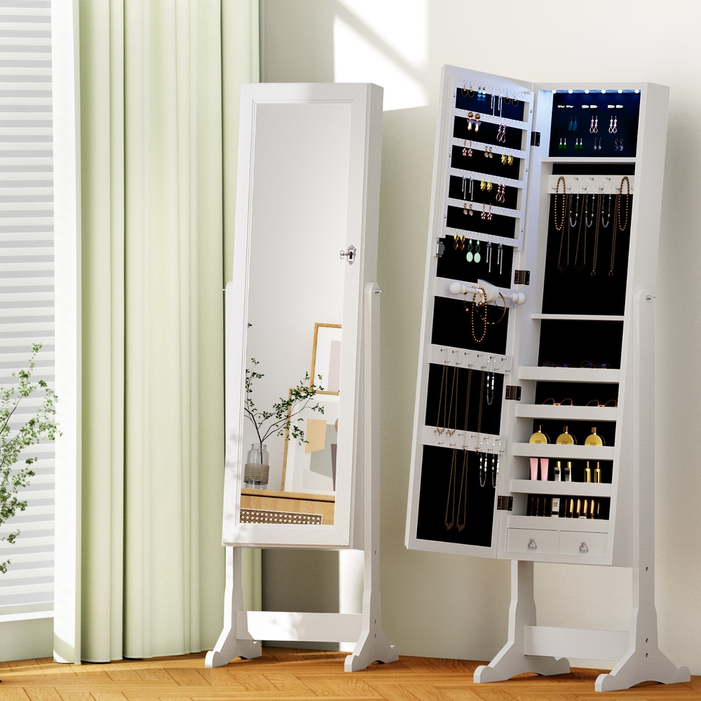 Discover the ultimate Artiss Jewellery Cabinet: crafted from sturdy MDF with ample storage, LED-lit interior, full-length mirror, soft flocking lining, and easy assembly. Ideal for organising and showcasing your collection elegantly.