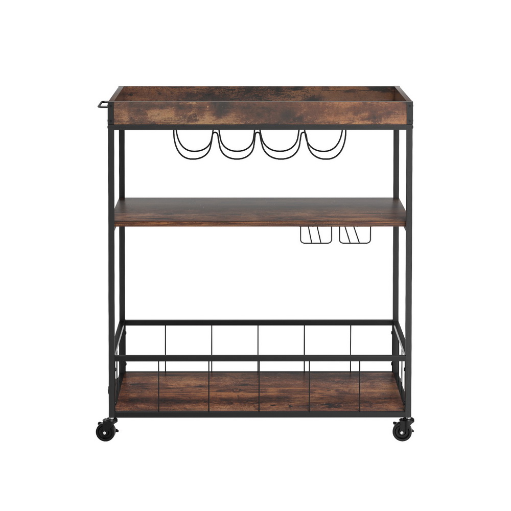 Versatile functionality as a kitchen island, storage cart, or coffee bar