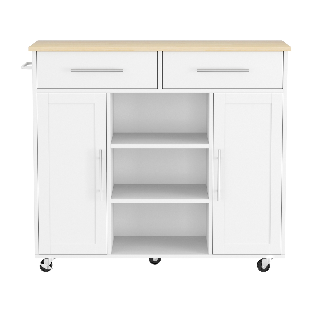 Maximize your kitchen space with the Artiss Kitchen Island Cart, designed for both storage and versatility. Crafted from durable MDF, this sturdy cart features 2 spacious drawers, 2 storage cabinets (with adjustable shelf), and 3 open shelvesperfect for organizing cookware, pantry items, or bar essentials. The convenient towel rack doubles as a push bar for easy maneuvering.