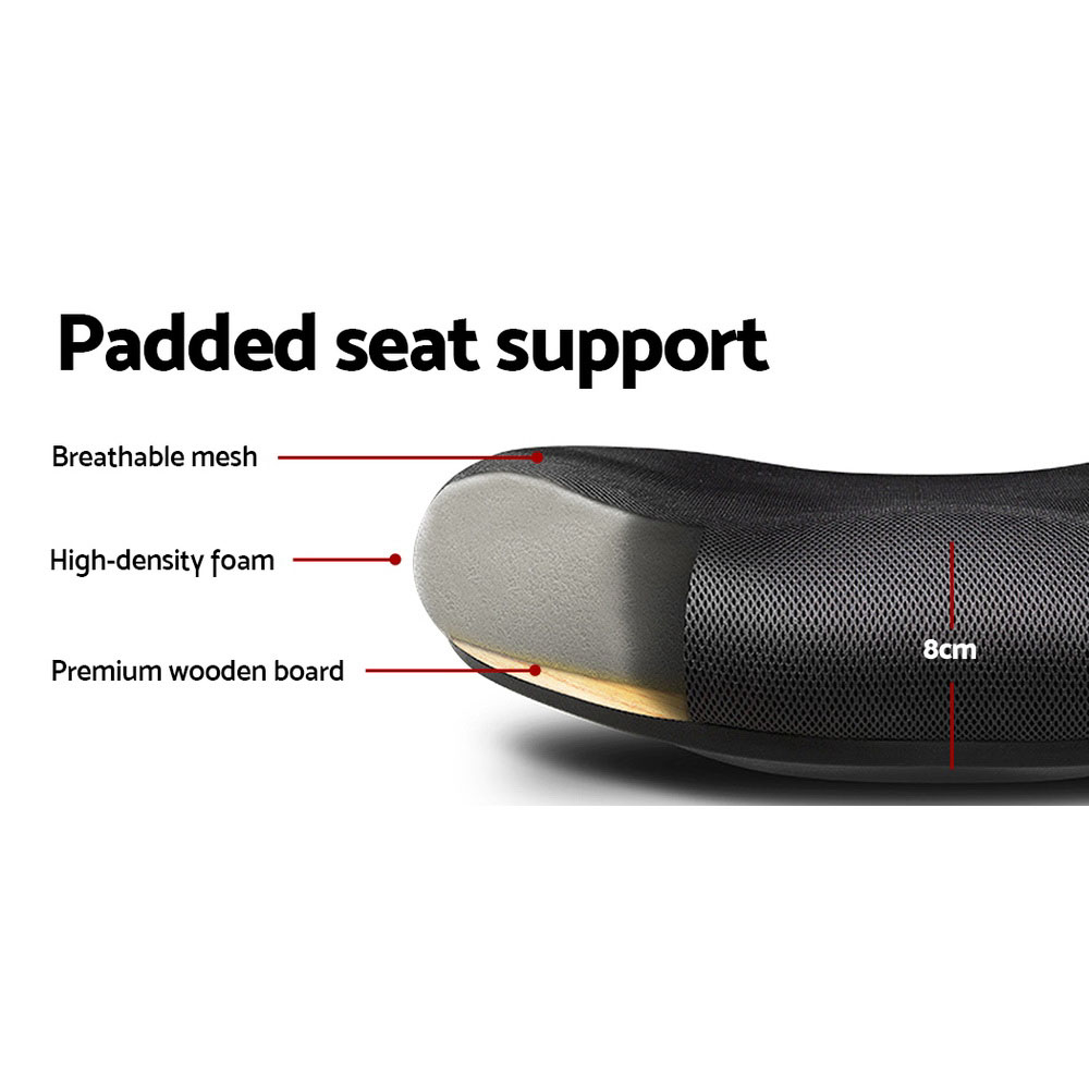 Is your office chair giving you a tough time? Stay productive and work feeling comfortable with our Artiss Galene office chair. The office chair that makes work feel laid back. The more comfortable chair, the higher is the productivity. Our office chair is designed with your comfort in mind and will have your back so that you can focus on the more significant things. Crafted precisely with durable plywood and plastic frame material, the office chair is sturdy and comes with a high-density foam padding. Its highly breathable mesh backrest lets air through keeping you cool even when workload rises. Furthermore, the stylish nylon base is not to be missed. It also features a contoured mid-back design that will give you the support you need and help you have a better posture. Plus, the office chair can be adjusted to your preferred requirements; adjust the height with gas lift mechanism to suit your needs, adjustable tilt for a comfortable sitting position, 360 degrees rotating seat, 90 degrees flip-up armrests, and easy mobility around your workspace with smooth castor wheels. Contemporary and well-crafted, our Artiss Galene office chair is sure to offer you a super comfortable seat all day long. Add this office chair to your home office or study room. You are sure to fall in love with the comfort it offers.