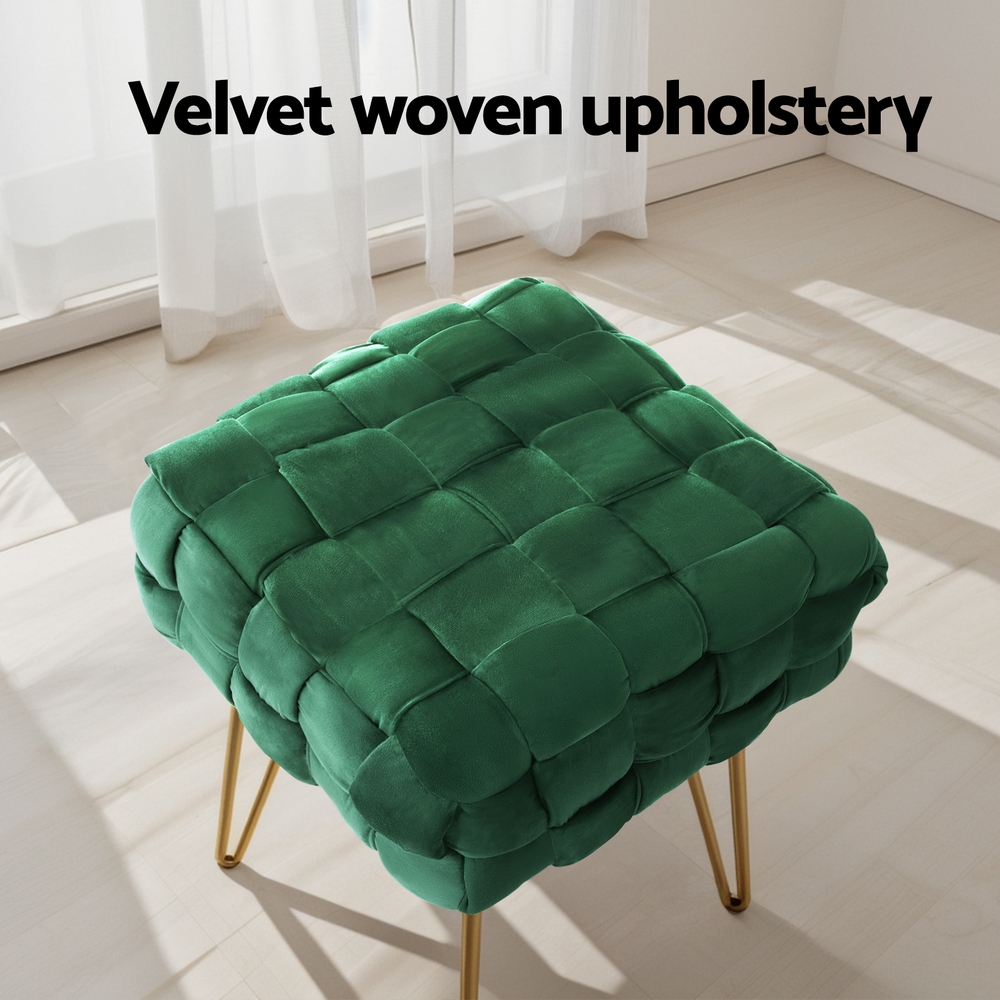 Artiss Ottoman Foot Stool Vanity Woven Velvet Green