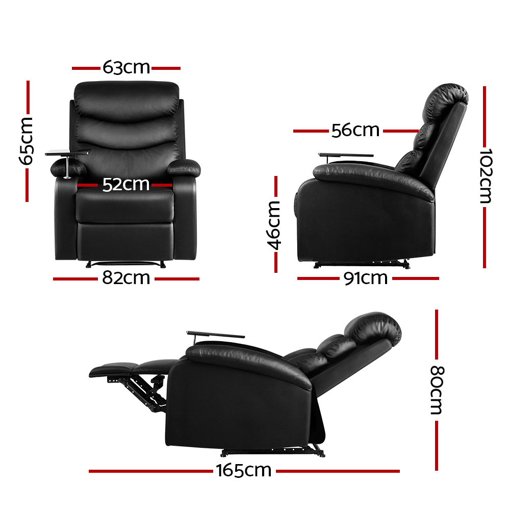 Artiss Recliner Chair Leather Black Tray Table Erika