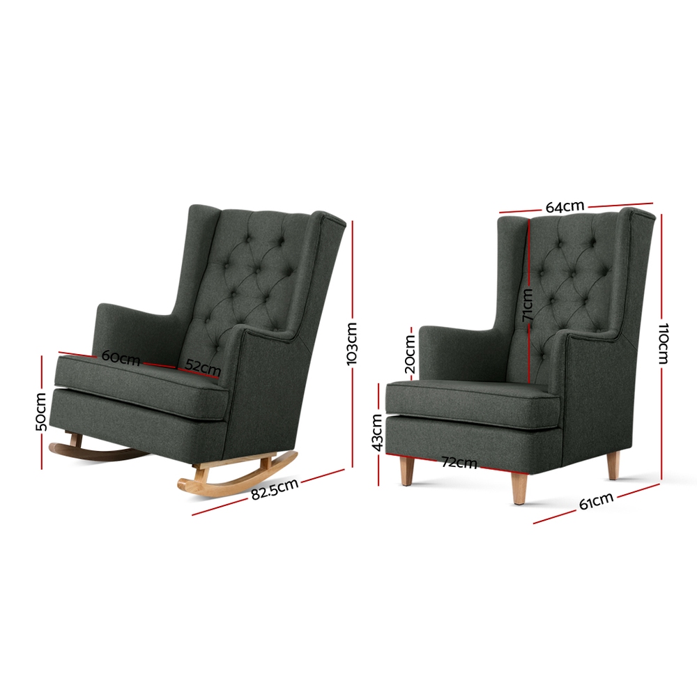 Artiss Rocking Chair Armchair Linen Fabric Charcoal Gaia