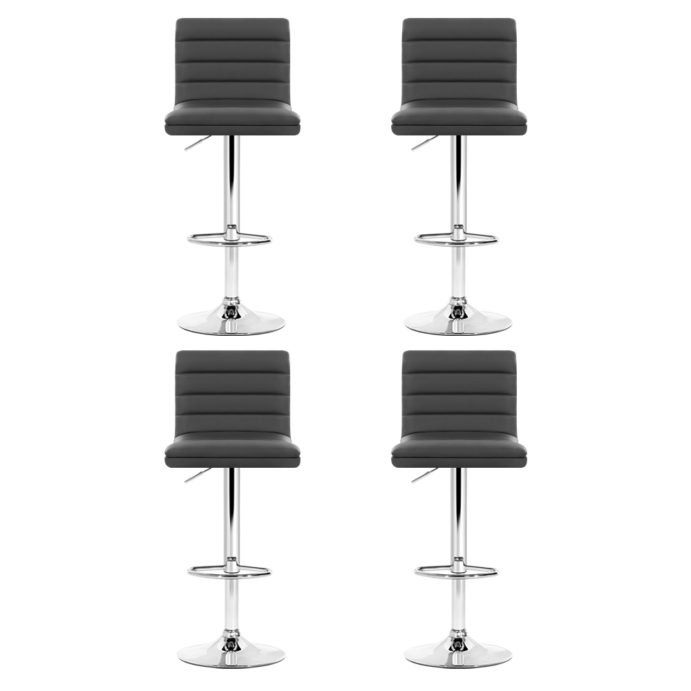 Artiss Set of 4 PU Leather Lined Pattern Bar Stools- Grey and Chrome