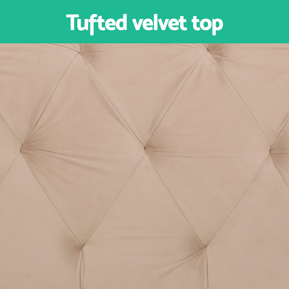 Look no further than the Noel Storage Bench from Artiss for storage with style and functionality. Constructed from a solid pine and fir wood frame with woven panels, the bench suits homes with a rustic, boho or Hampton’s aesthetic. The tufted velvet top is filled with high-resilience foam for a comfortable, durable seat. Detach the top lid and find a generous storage space to fit clothes, toys, pillows, blankets and more. The sturdy metal legs keep the bench standing tall under pressure. The seat can support up to 100kg, while the storage compartment will support up to 80kg. Strong, stable and long-lasting, the Noel Storage Bench is the perfect solution to your living room storage woes. Get yours today.