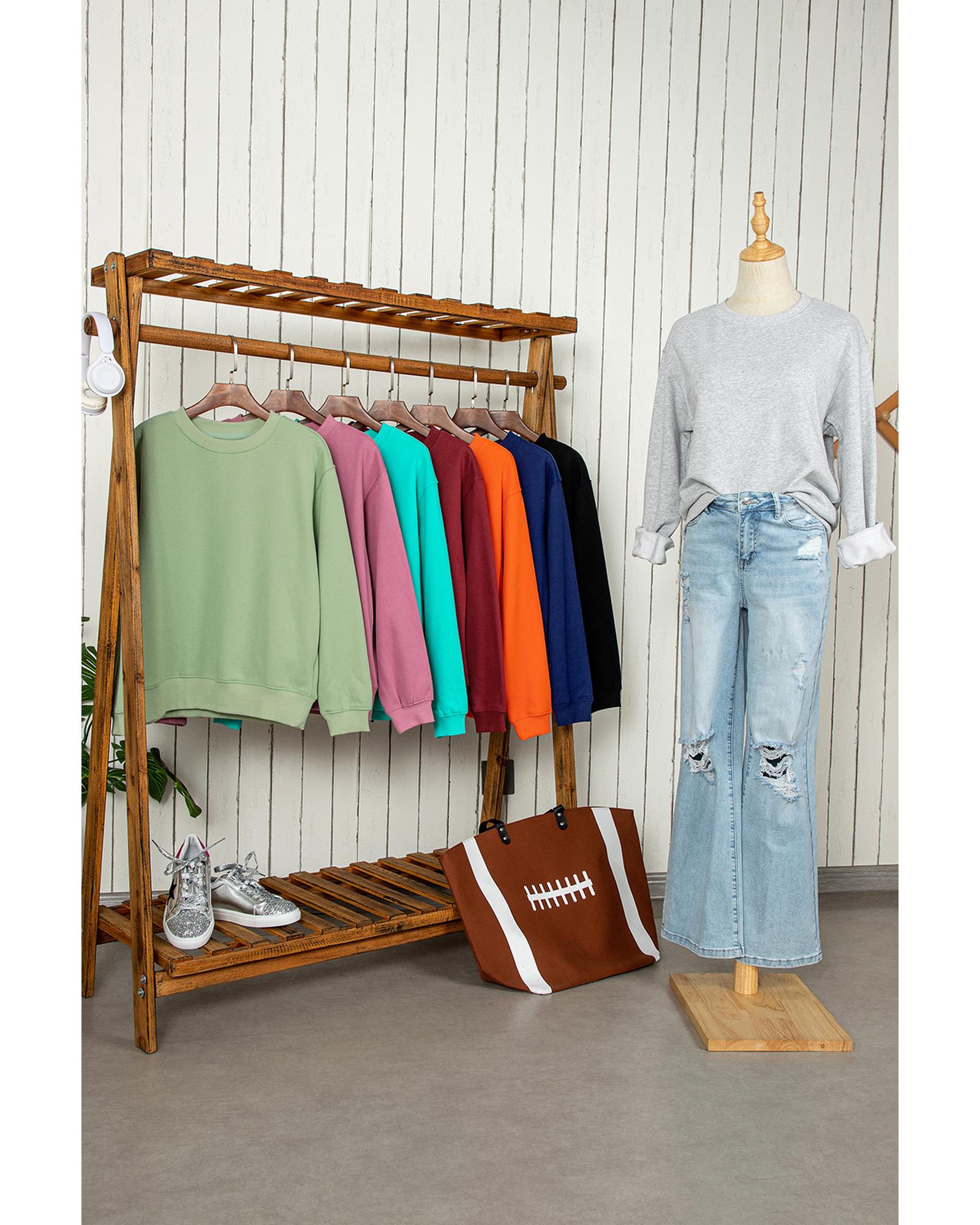 Aruba Blue Solid Fleece Lined Drop Shoulder Terry Sweatshirt – M