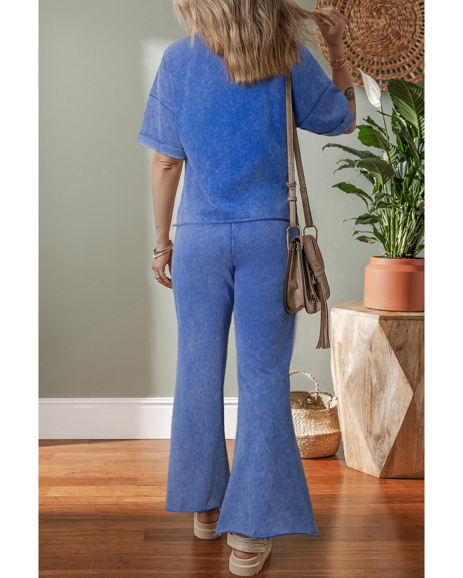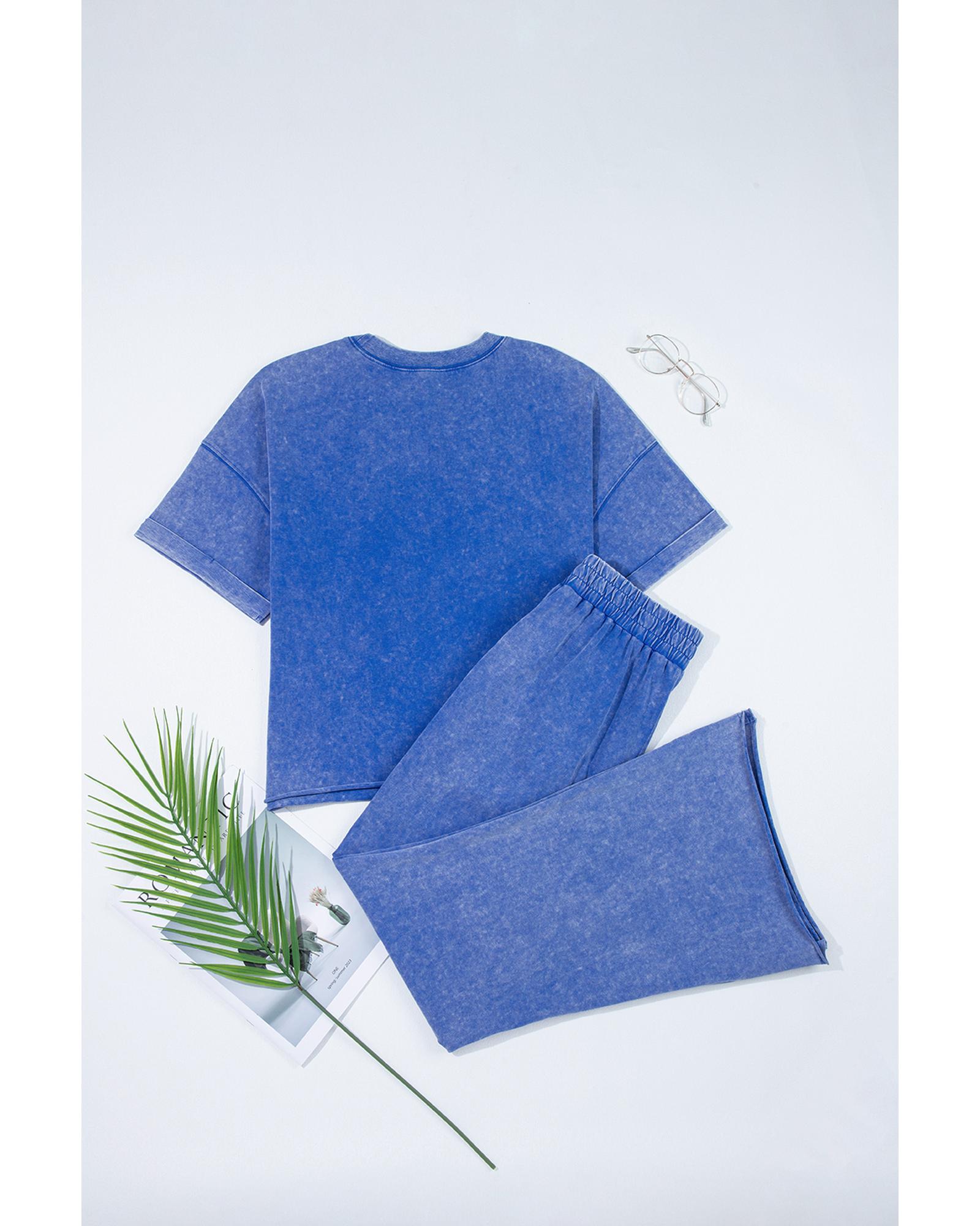 Ashleigh Blue Acid Wash Star Patched Rolled Trim Pants Set – L