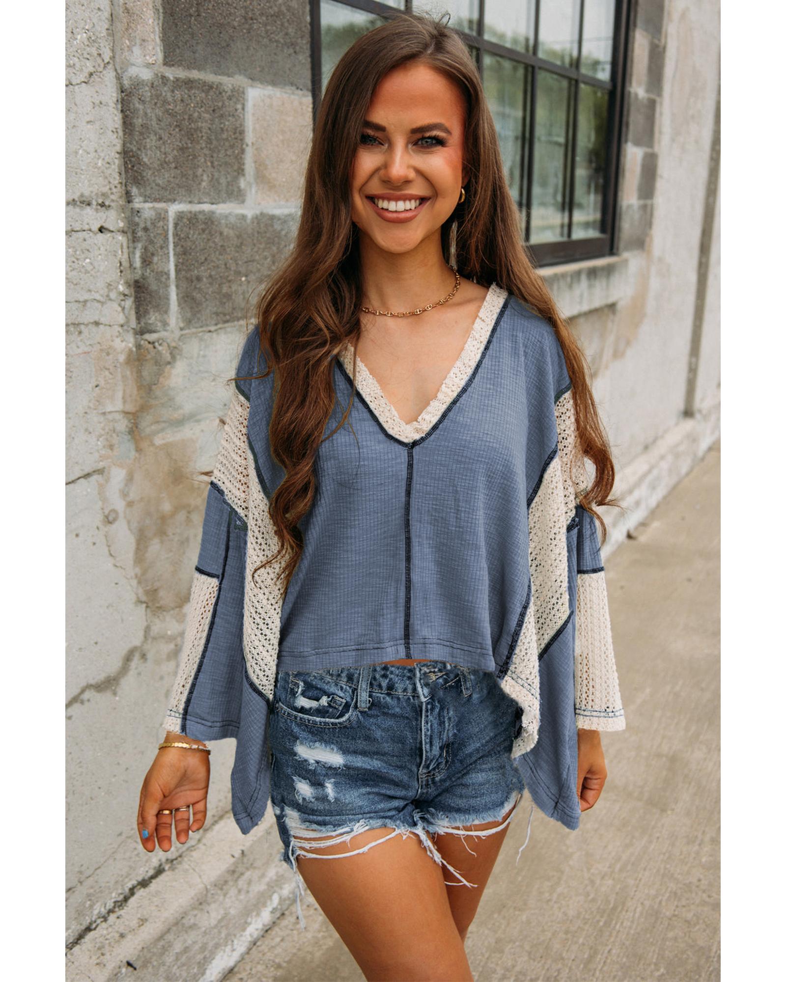 Ashleigh Blue Crochet Detail Exposed Seam High Low Loose Top – XL