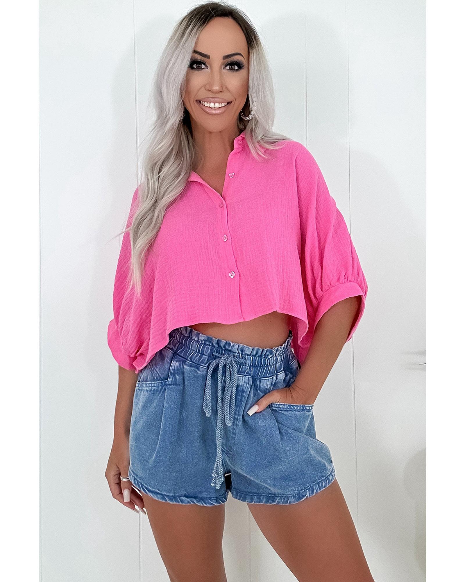 Ashleigh Blue Drawstring High Waist Casual Denim Shorts with Pockets – 8 US