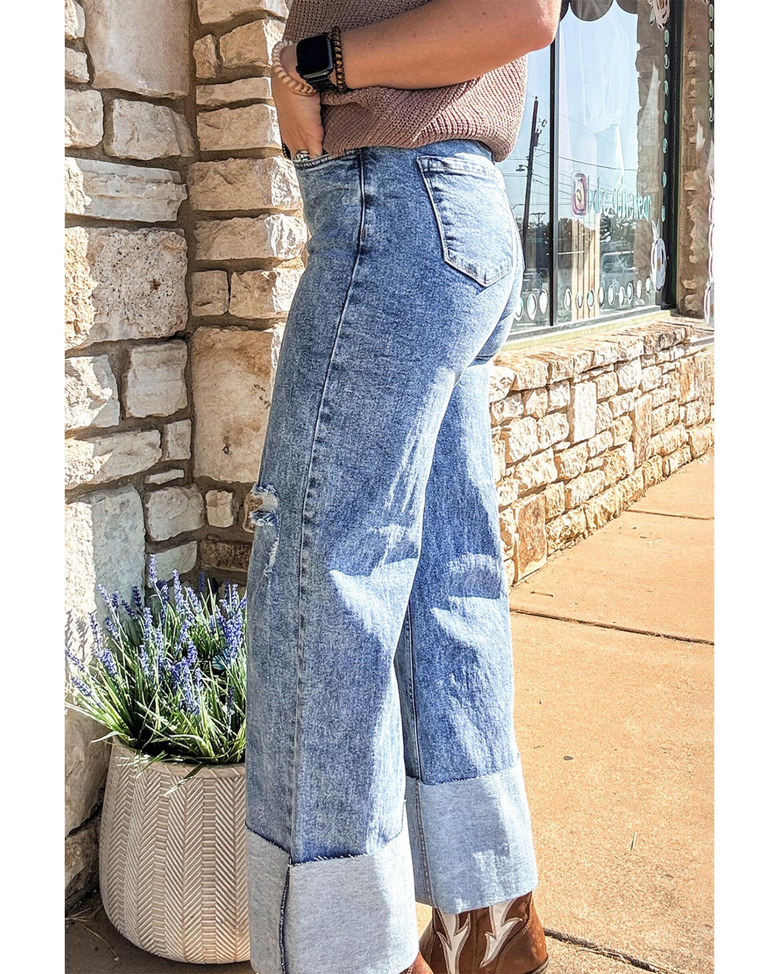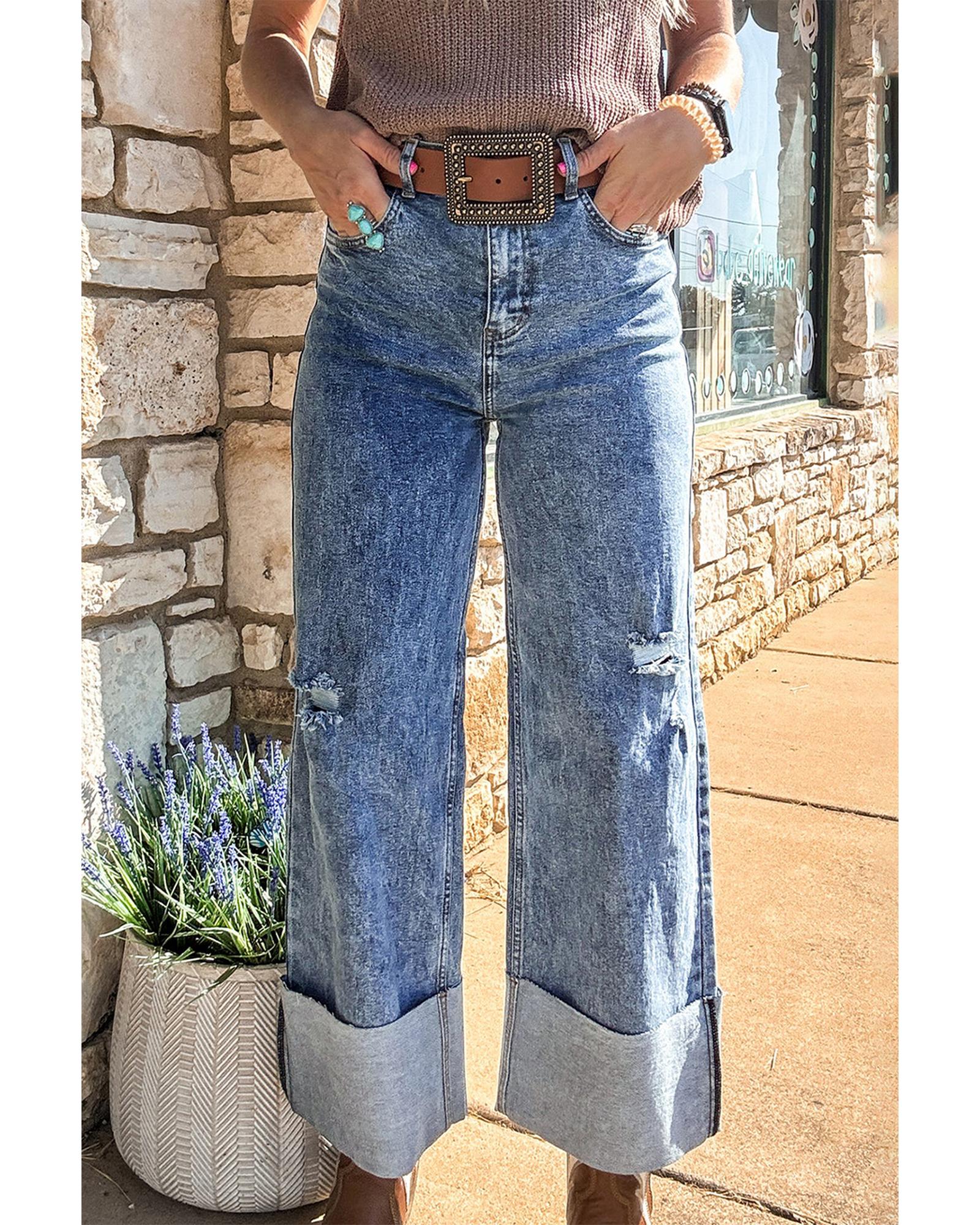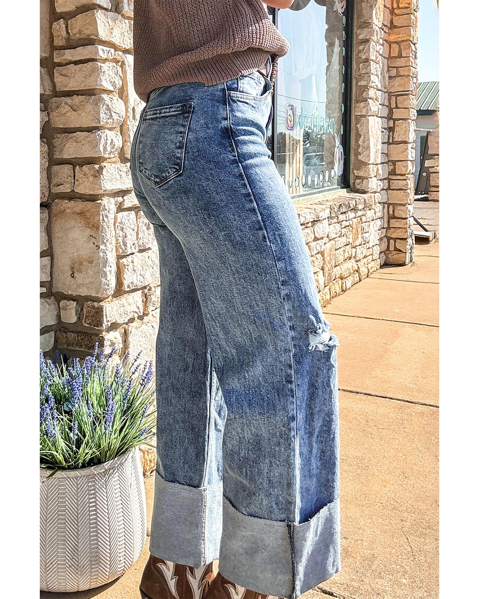 Ashleigh Blue Mineral Wash Bottom Cuff Distressed Wide Leg Jeans – 14 US