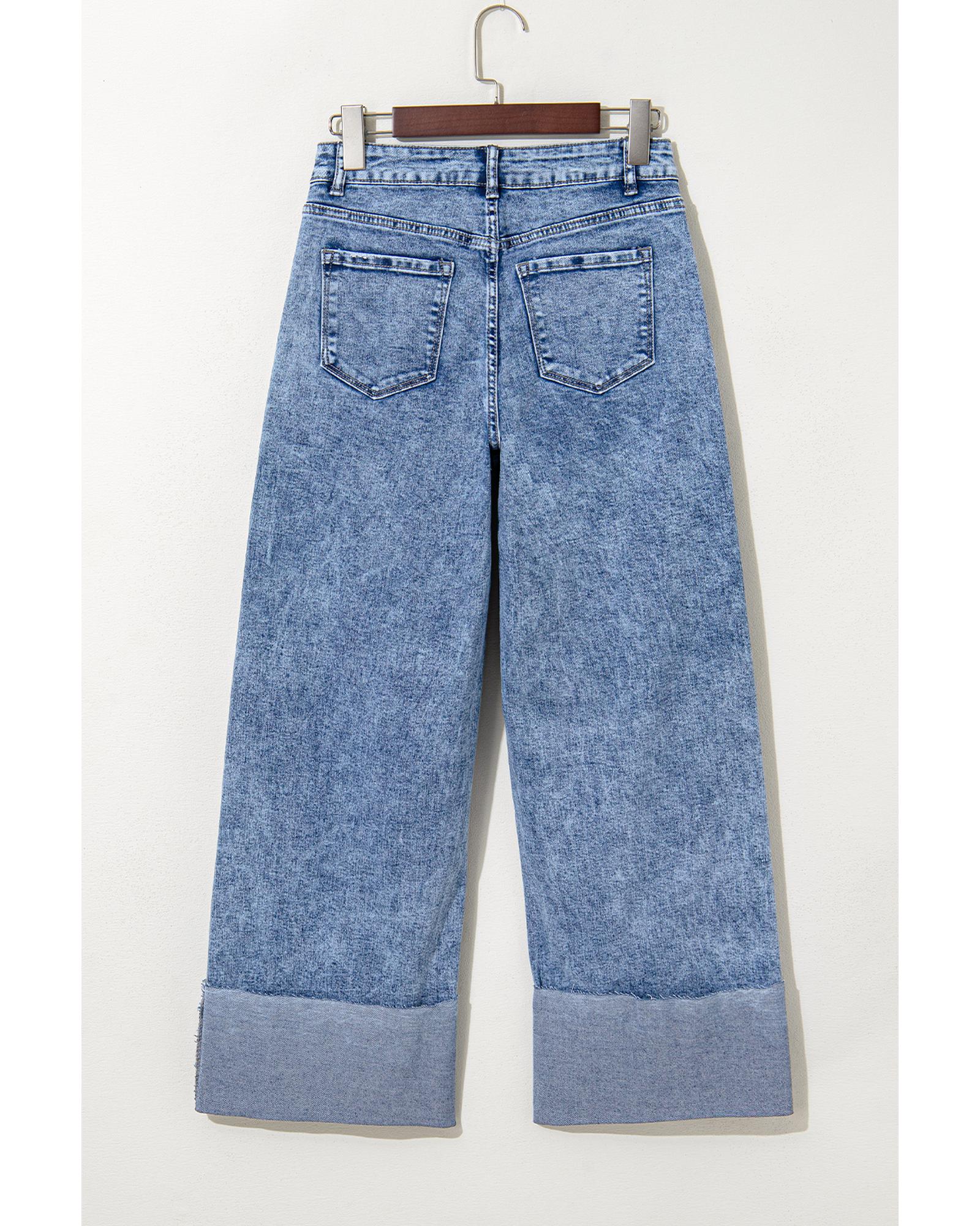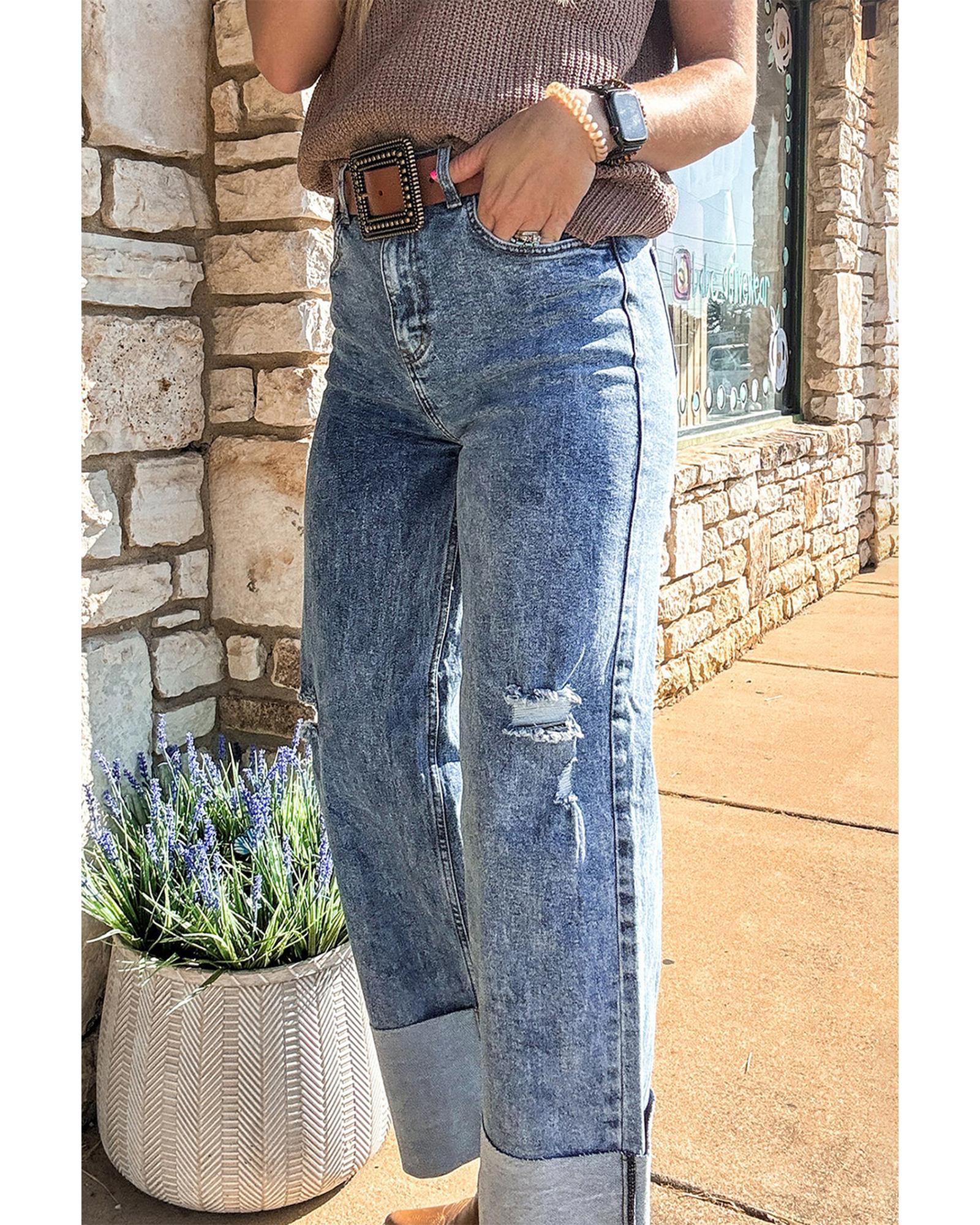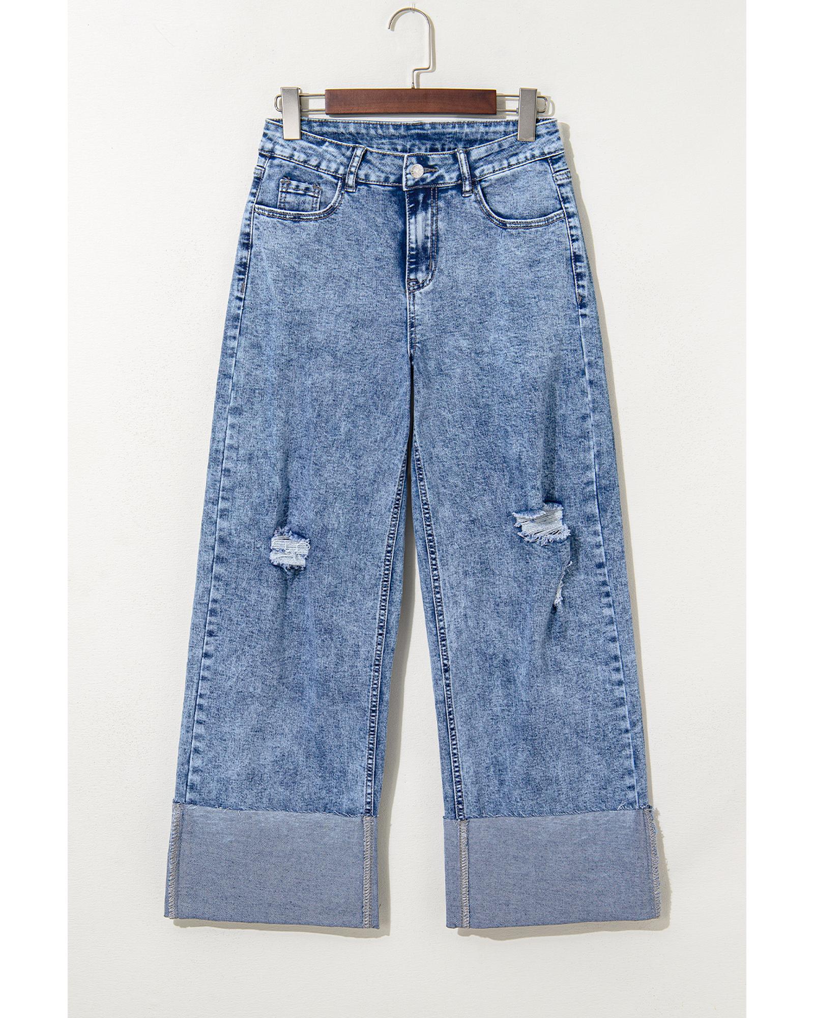 Ashleigh Blue Mineral Wash Bottom Cuff Distressed Wide Leg Jeans – 14 US