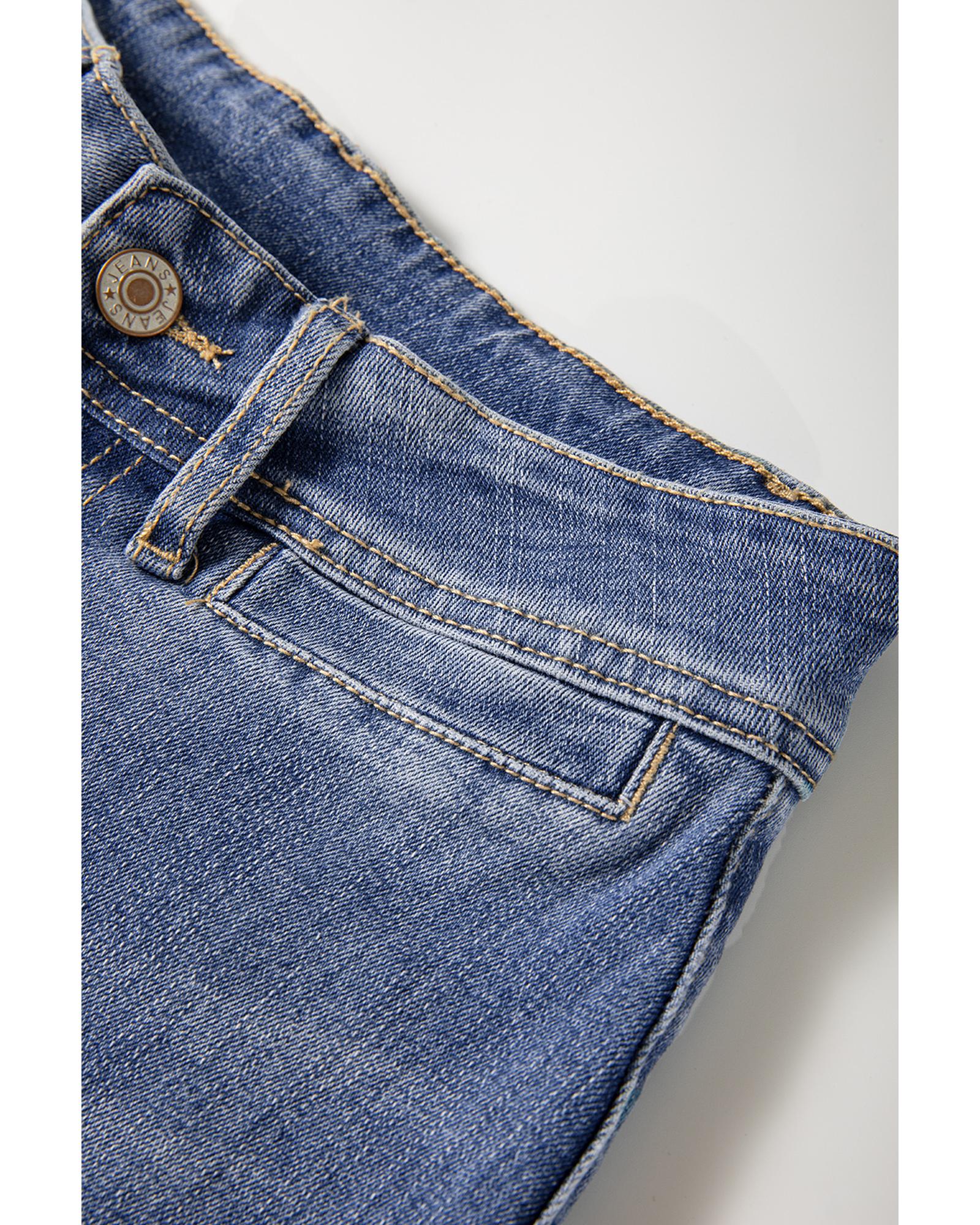 Sail Blue High Waist Button Fly Seamed Raw Hem Flare Jeans - 10 US