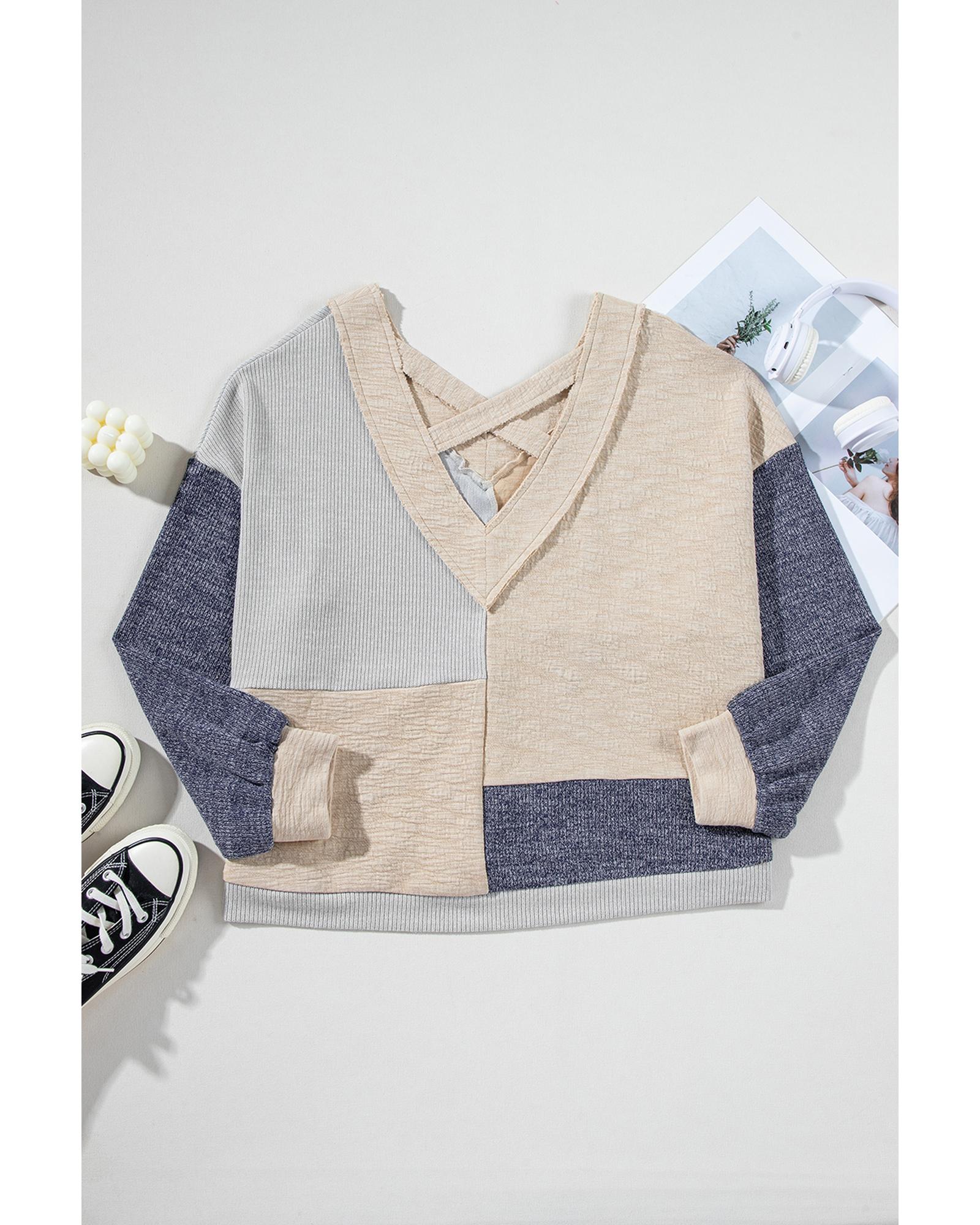 Ashleigh Blue Plus Size Textured Colorblock Patchwork V Neck Top – 3X