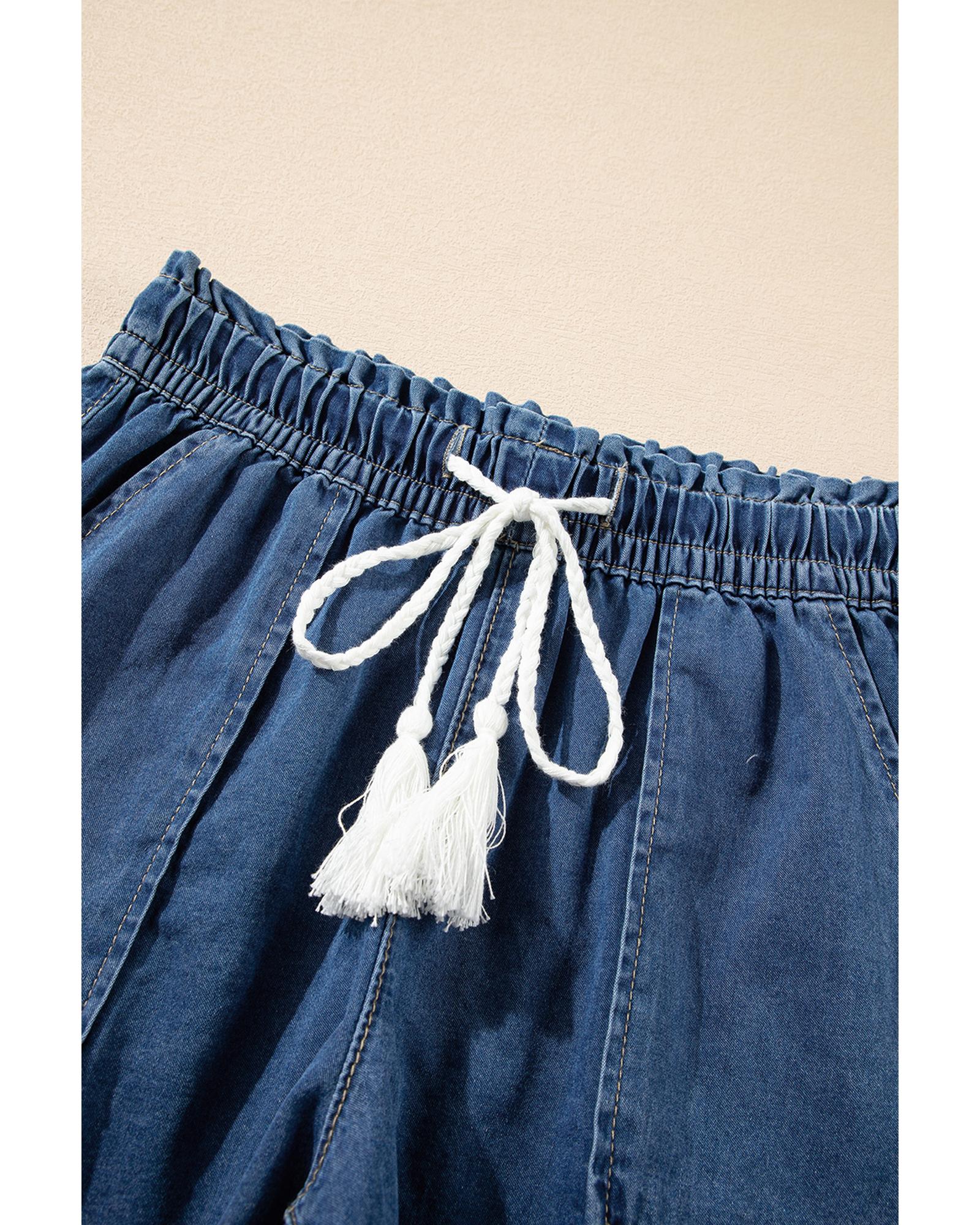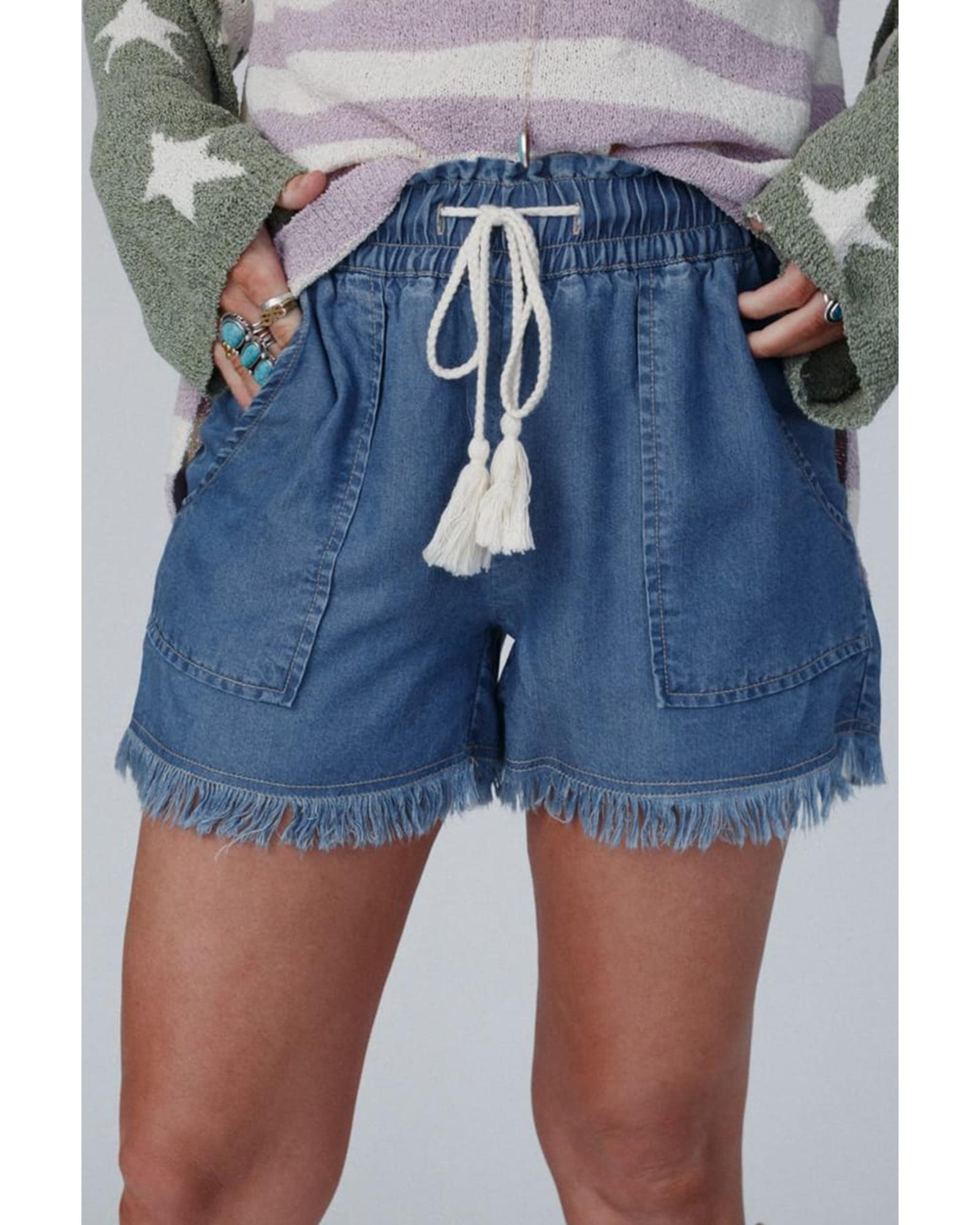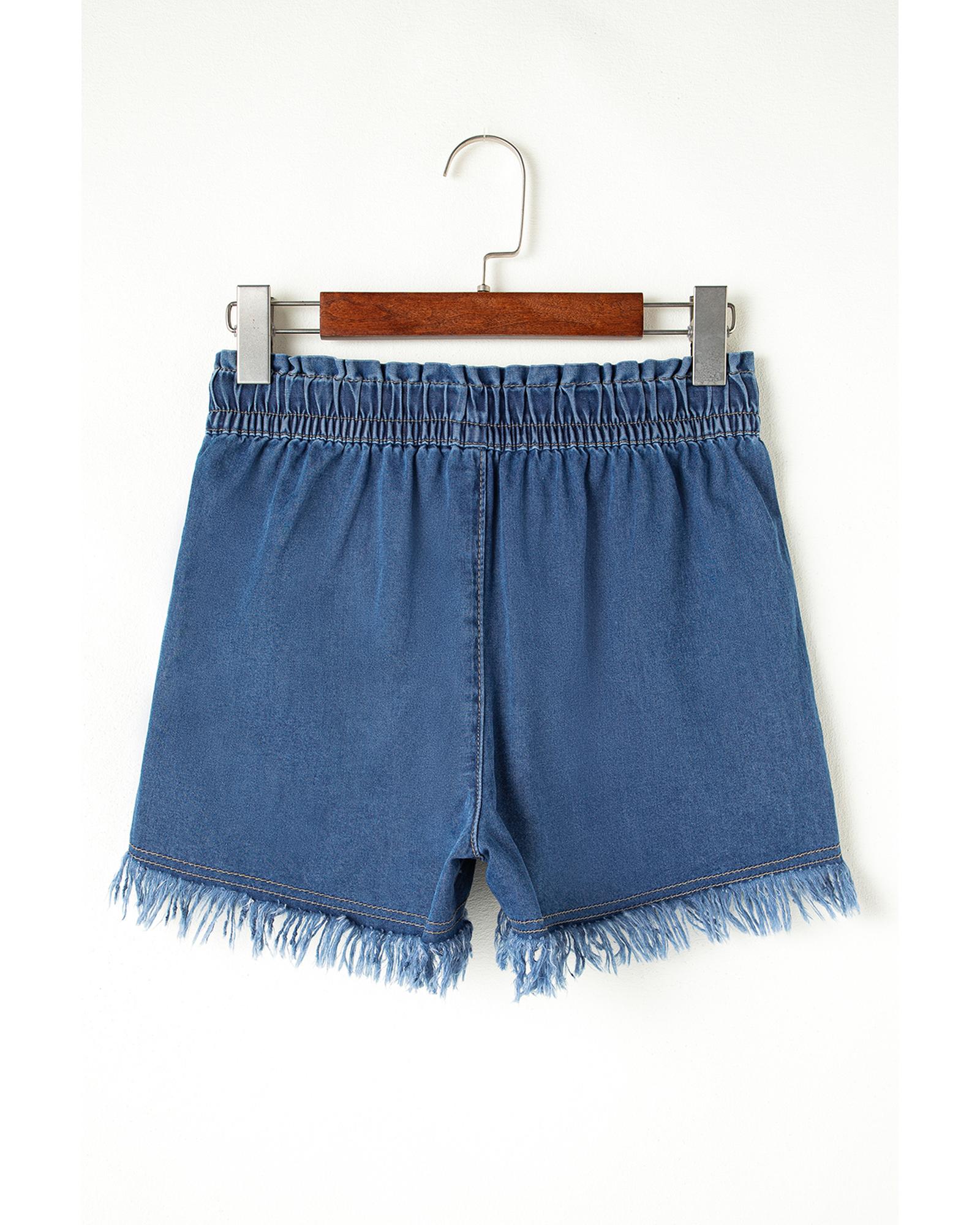 Ashleigh Blue Raw Hem Drawstring High Waist Denim Shorts with Pockets – 10 US