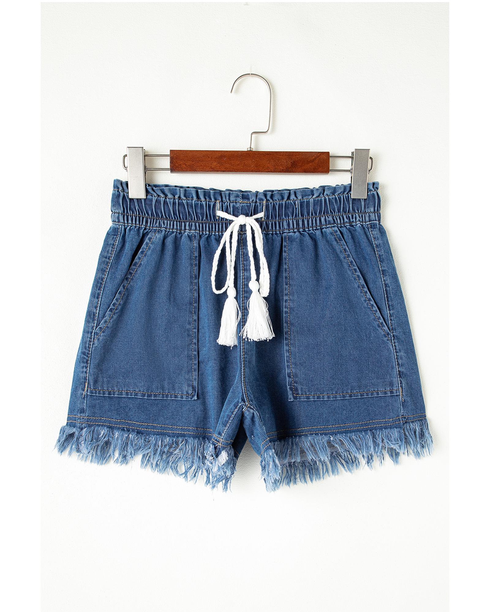 Ashleigh Blue Raw Hem Drawstring High Waist Denim Shorts with Pockets – 12 US
