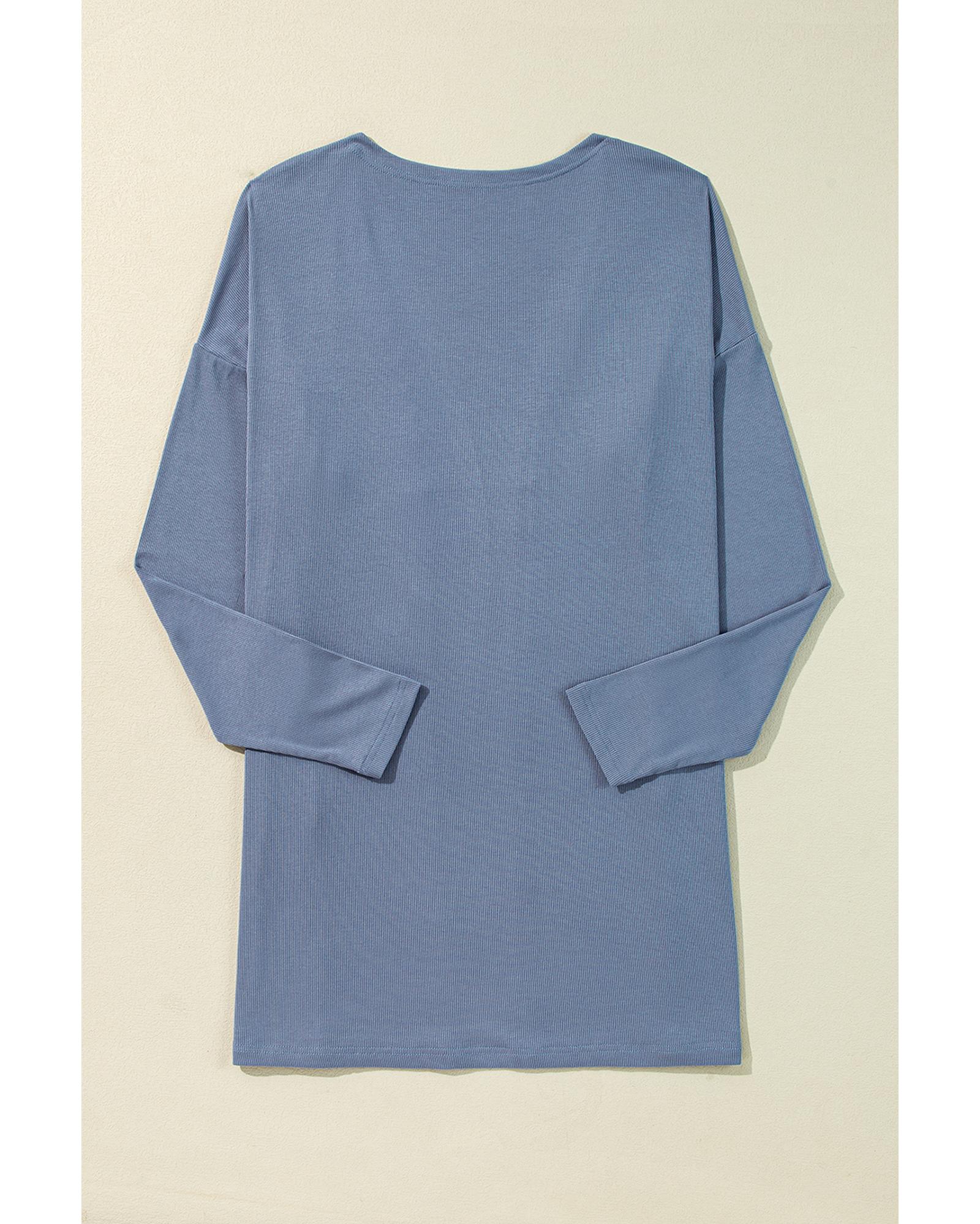 Ashleigh Blue Solid Color Rib Knit Open Front Tunic Cardigan – L