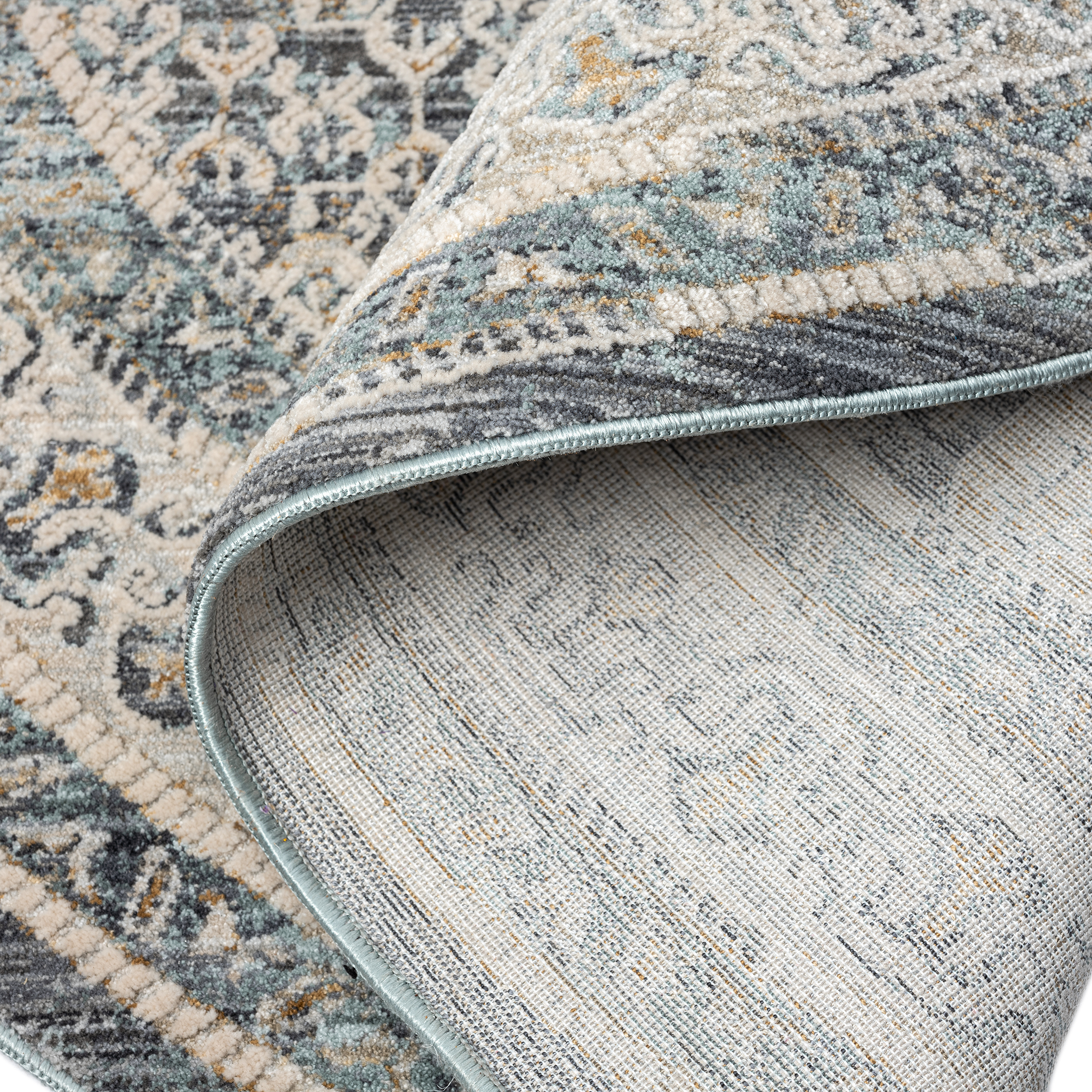 This exquisite rug is the perfect foundation for modern farmhouse ensembles that effortlessly anchors your look. It’s made in Turkey and crafted from a blend of cross-woven pile using multi-textured polyester fibers, power-loomed into a soft cotton base, making it resistant to stains and spills. The Oriental-inspired pattern with scrolling botanical accents and a bordered motif give this piece a touch of traditional appeal, while the distressed design elevates the look with vintage charm. The muted, harmonious color palette used in these rugs make them blend into a variety of spaces. Plus, its low .25″ pile height is easy to clean and works well in high-traffic rooms like the kitchen or bathroom floor space in your home and will complement almost all color schemes. This highly decorative collection also contains shed-resistant and anti-static properties and is easy to maintain.