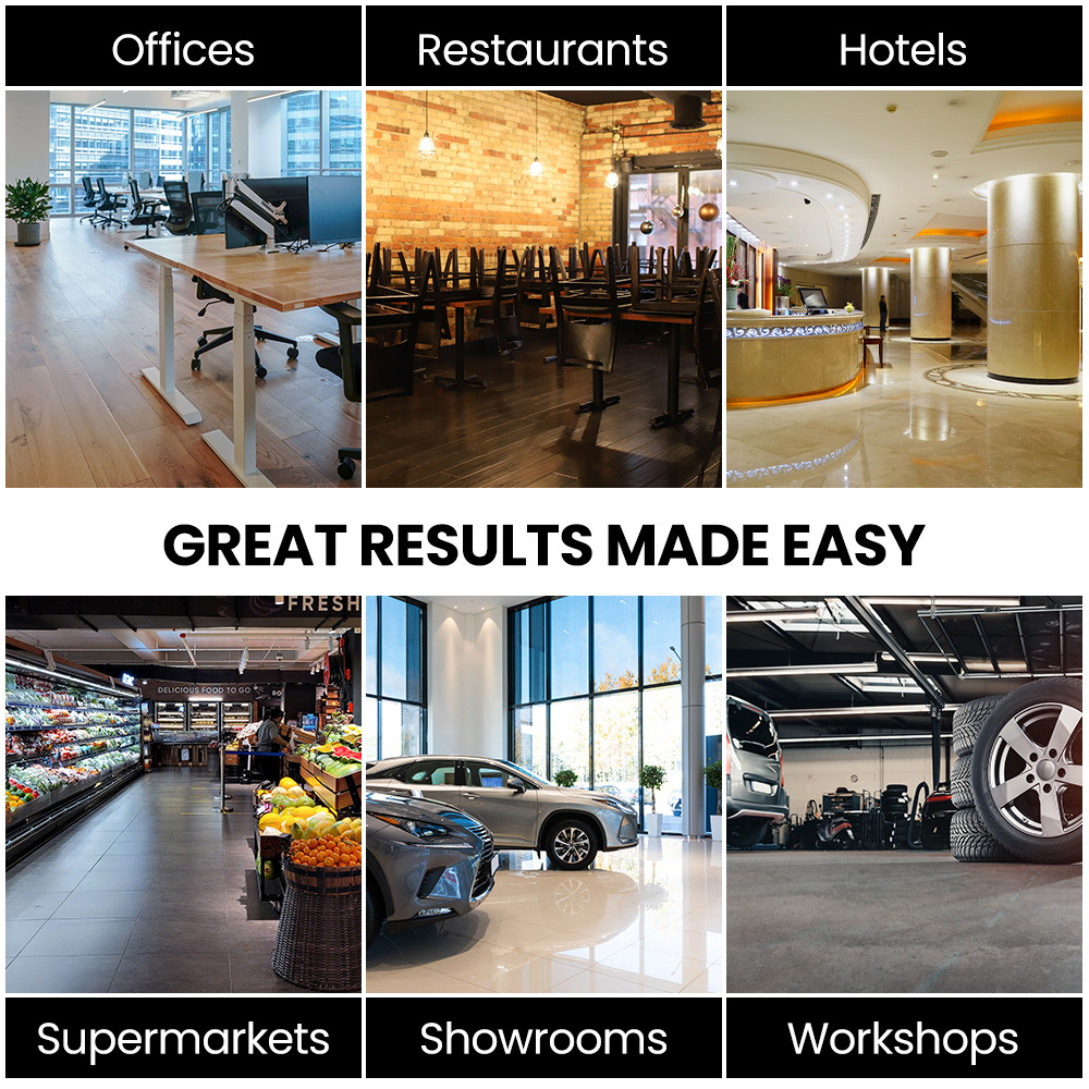 Our floor scrubber comes fully equipped with everything needed for immediate operation, including a brush, squeegee blade, charger, and tool bag. Compact yet powerful, an indispensable tool for achieving superb floors in commercial buildings, hospitals, schools, and more.