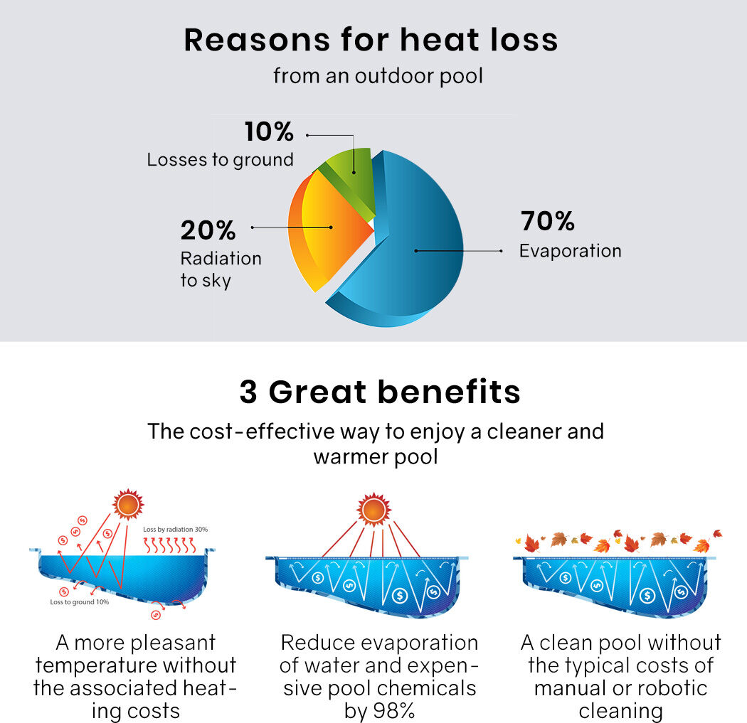 Reduce water evaporation by up to 98% and keep those expensive pool chemicals from escaping. The Aurelaqua Pool Cover doesn’t just protect your pool, it protects your wallet too.