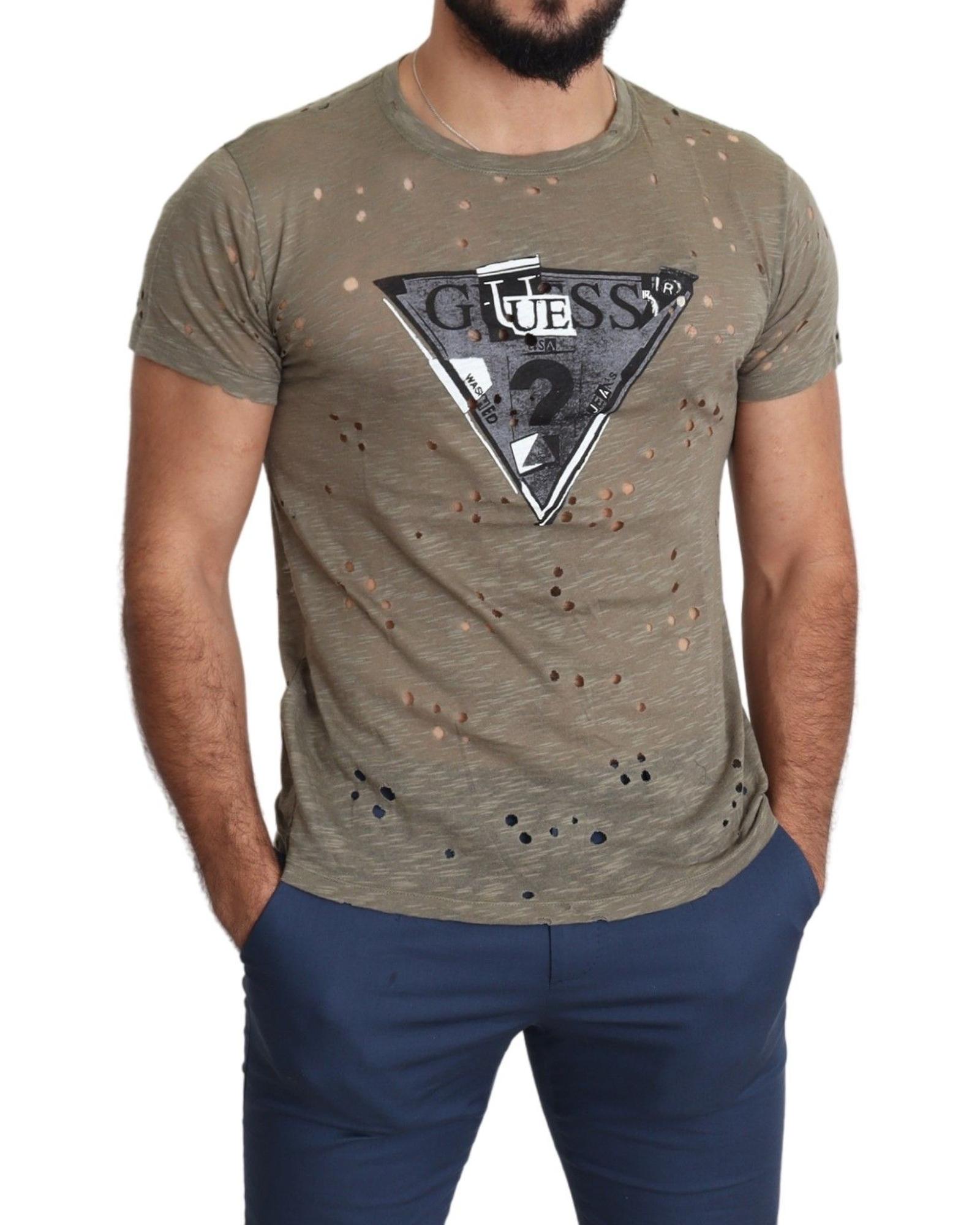 Authentic Guess Brown Cotton Stretch T-Shirt M Men