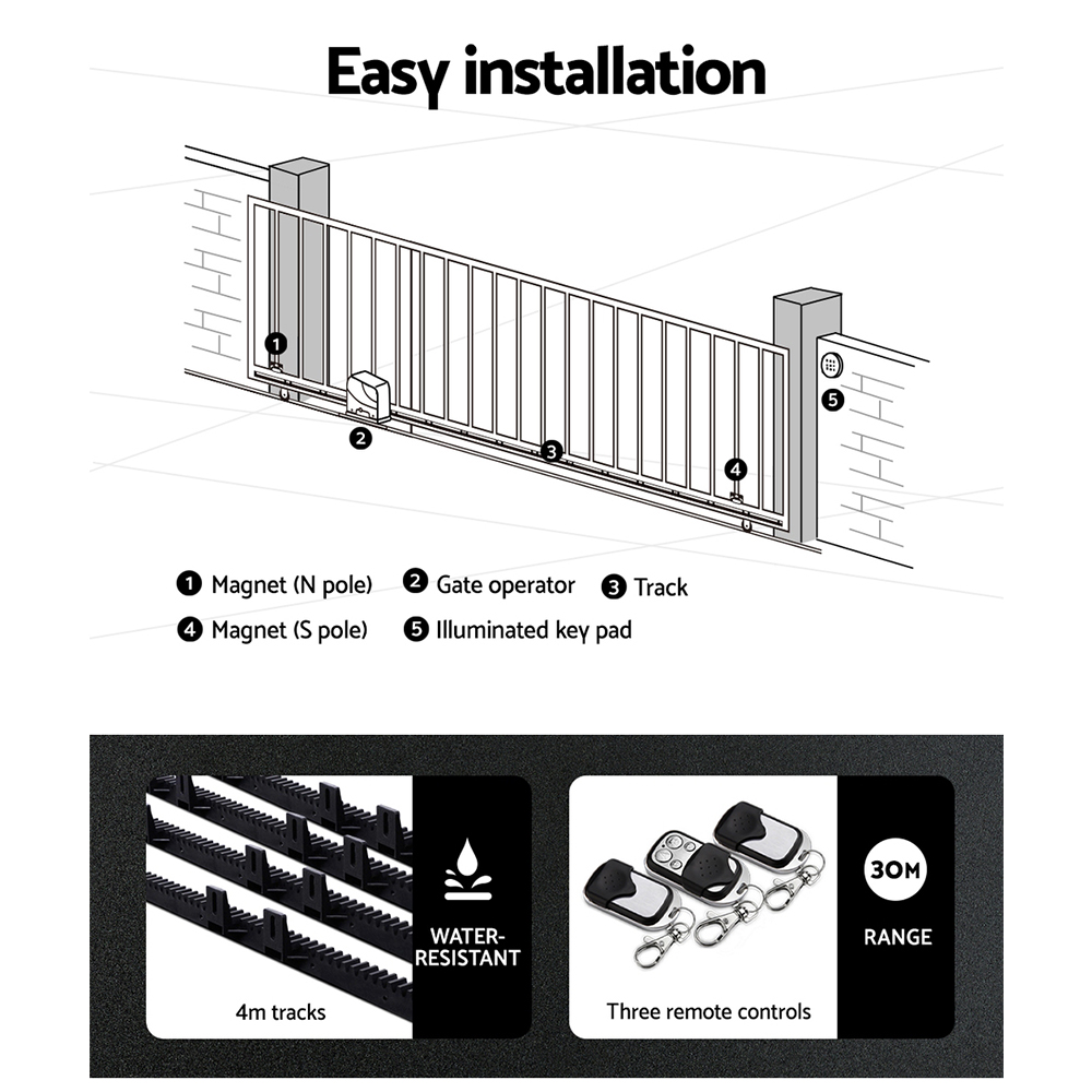 Automatic Sliding Gate Opener Kit 20W Solar 4M 600KG