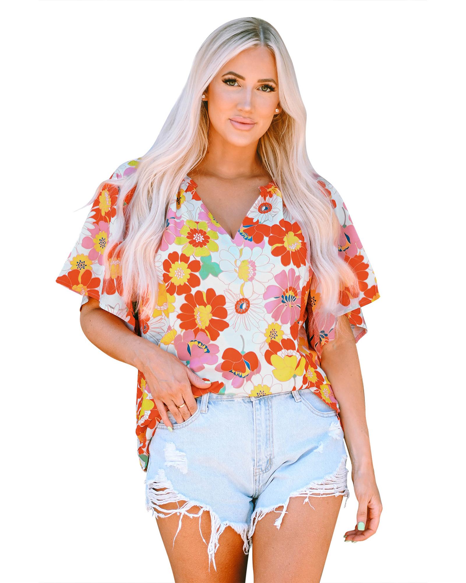 Azura Exchange Abstract Print V Neck Half Sleeve Blouse - S