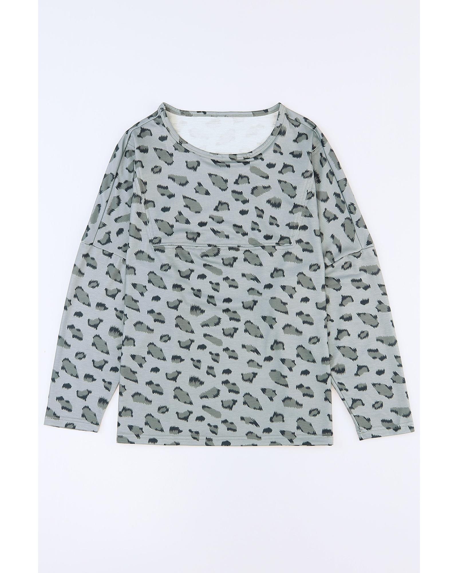 Azura Exchange Animal Print Stitching Loose Long Sleeve Top – M
