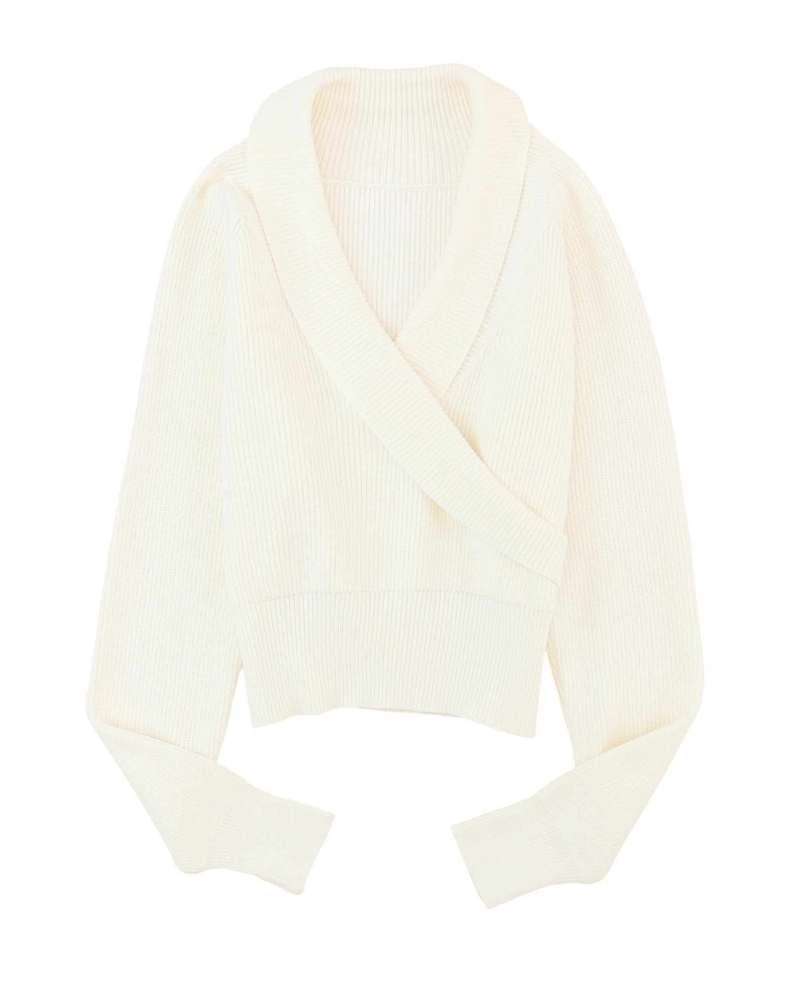 Azura Exchange Beige Ribbed Long Sleeve Surplice Crop Sweater – XL