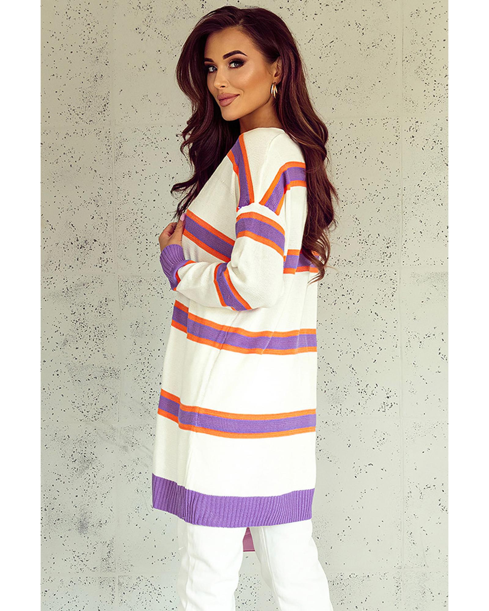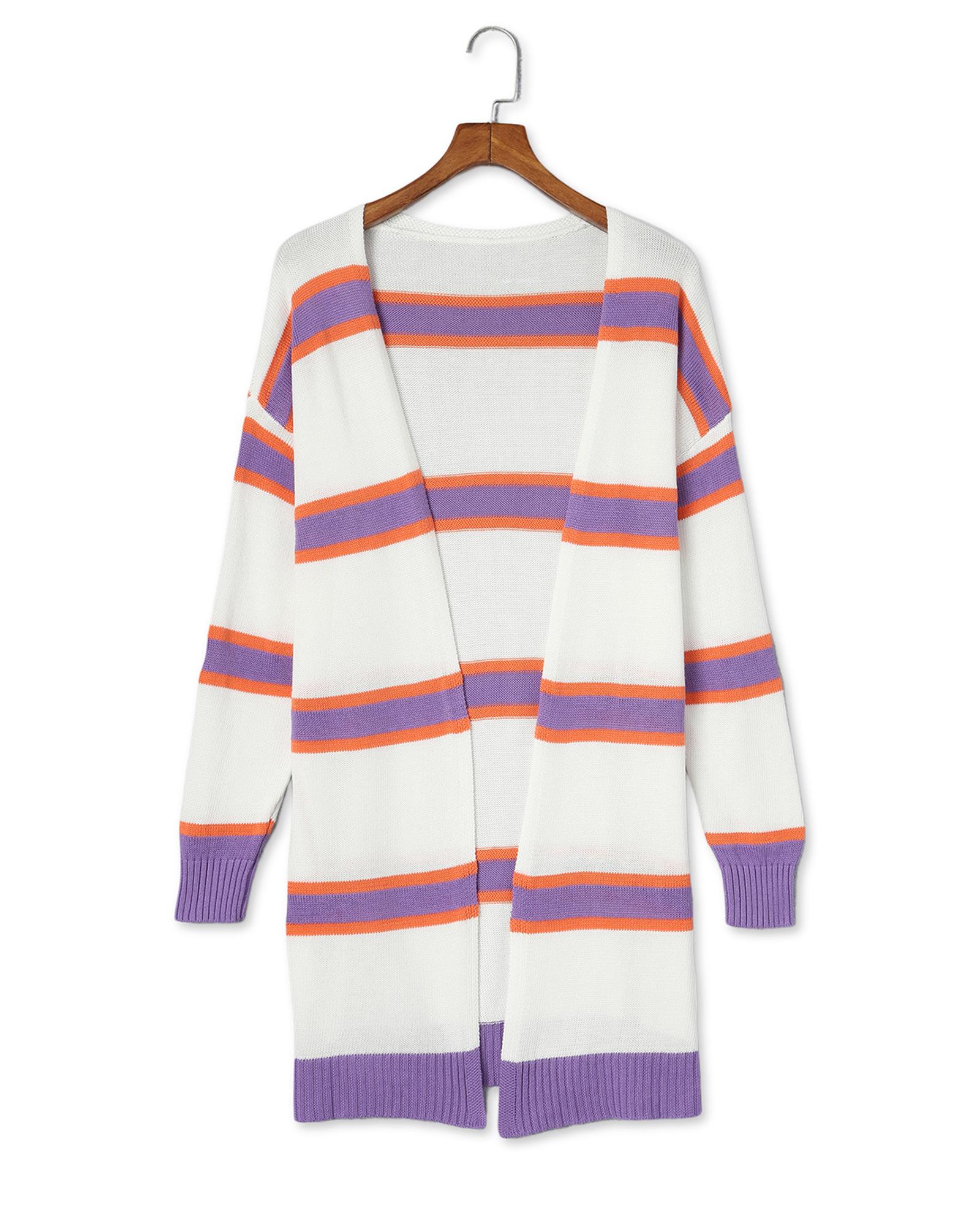 Azura Exchange Beige Striped Long Sleeve Ribbed Trim Button Cardigan – M