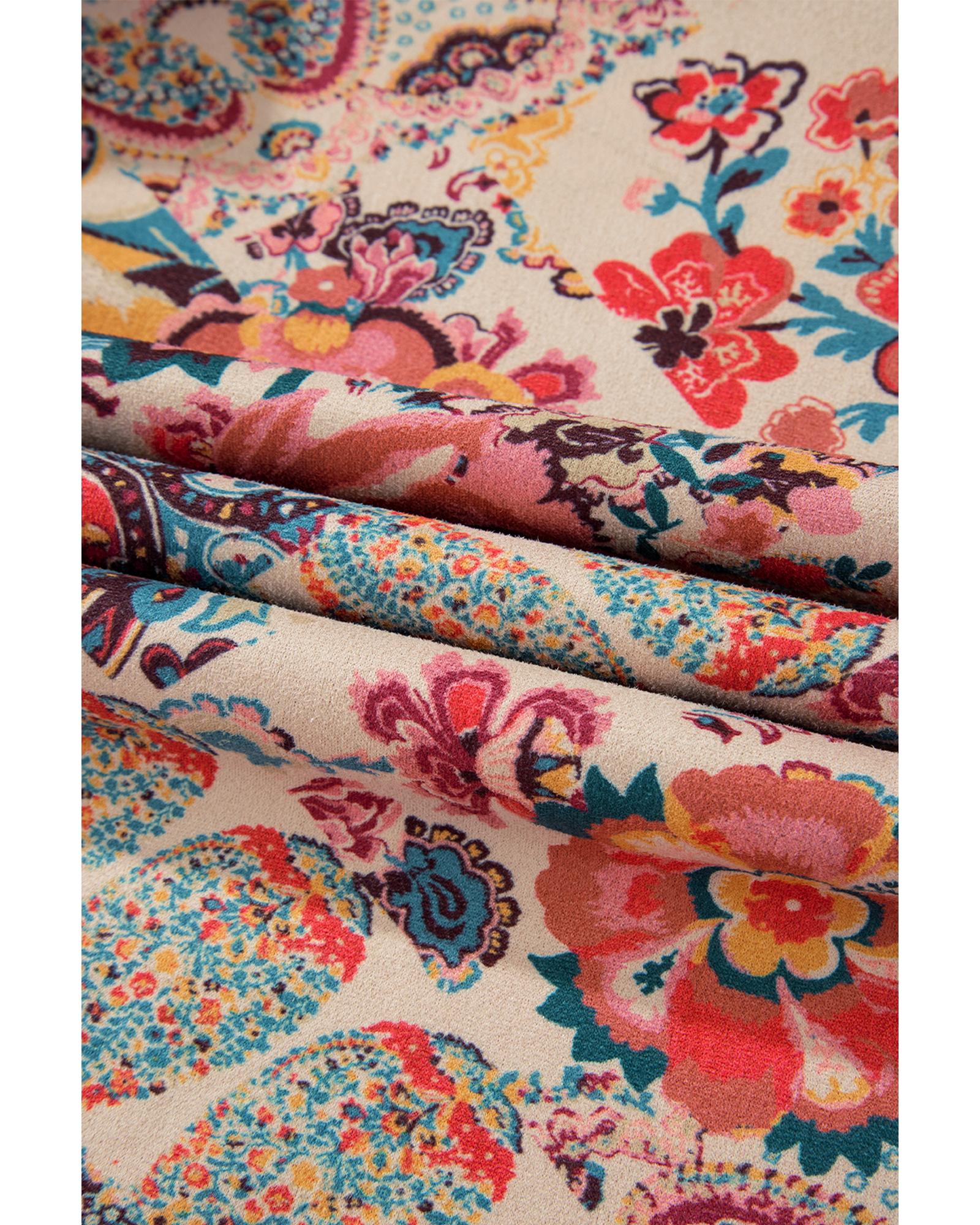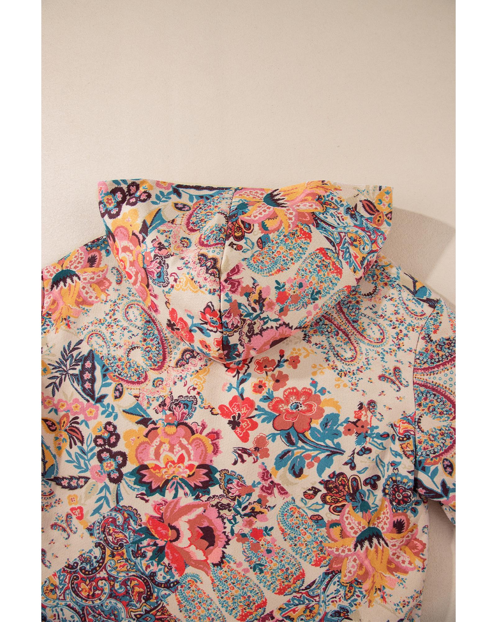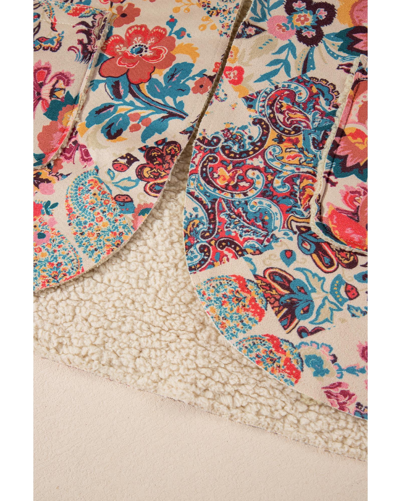 Azura Exchange Beige Vintage Paisley Floral Printed Sherpa Lined Hooded Jacket – S