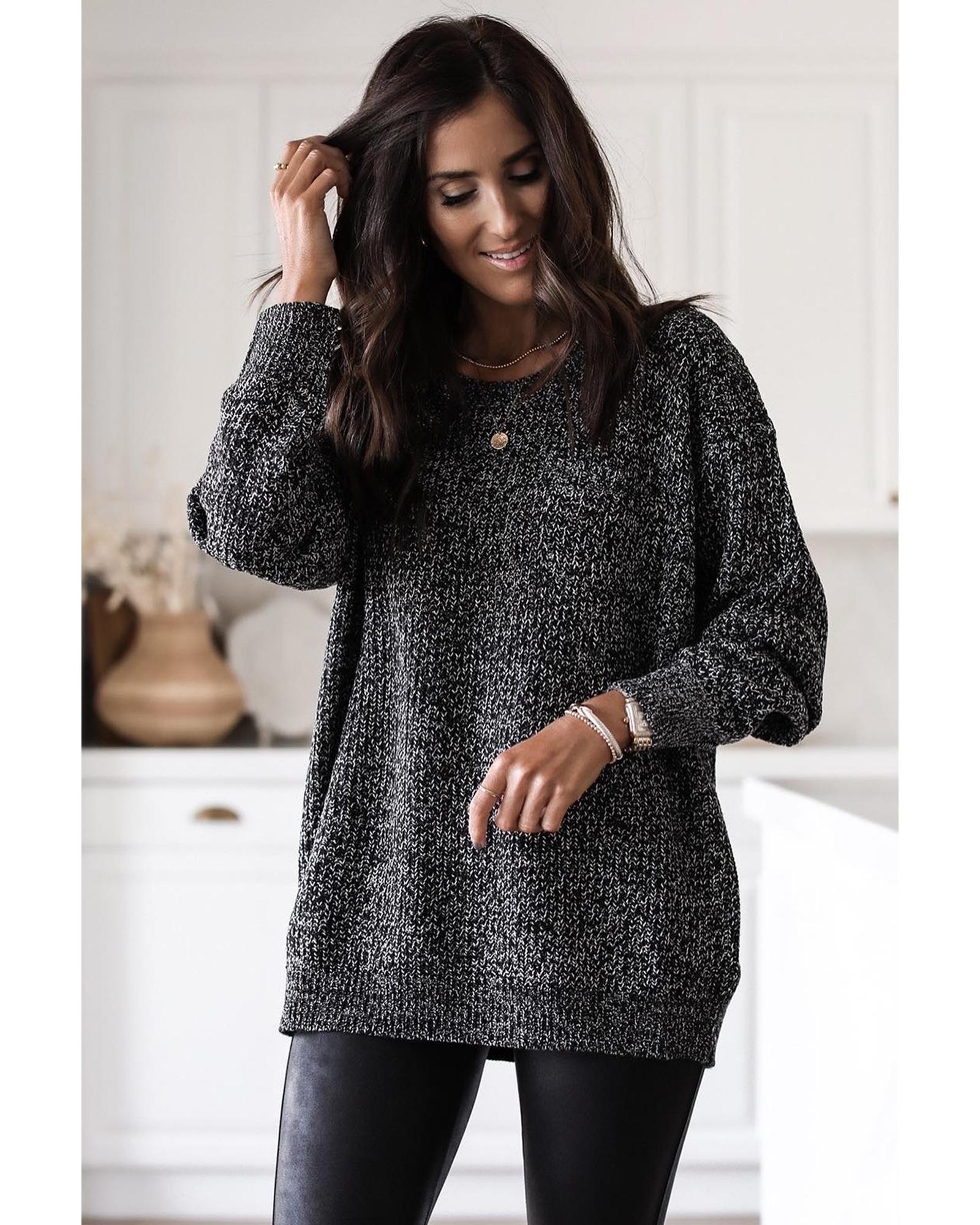 Azura Exchange Black Glittering Long Sleeve Tunic Sweater – S
