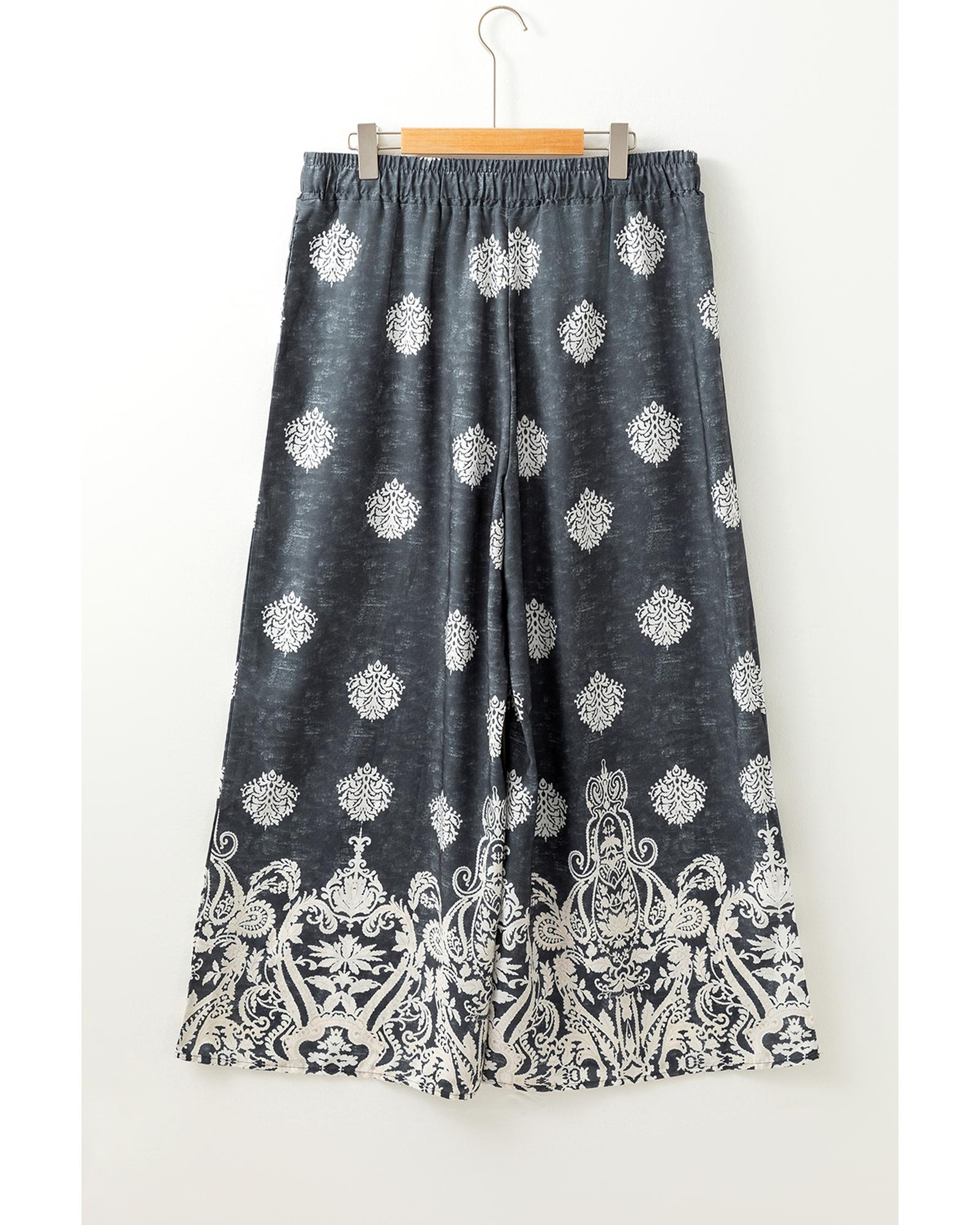 Azura Exchange Black Plus Size Geometric Ethnic Print Drawstring Wide Leg Pants – 3X