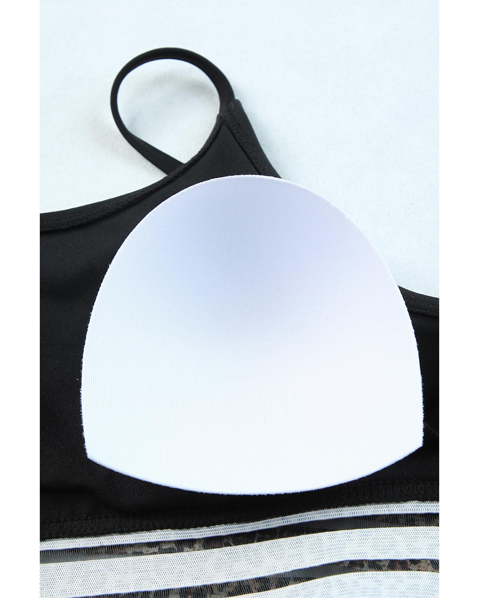 Azura Exchange Black Rose Leopard Mesh Trim 2pcs Bikini Swimsuit – S