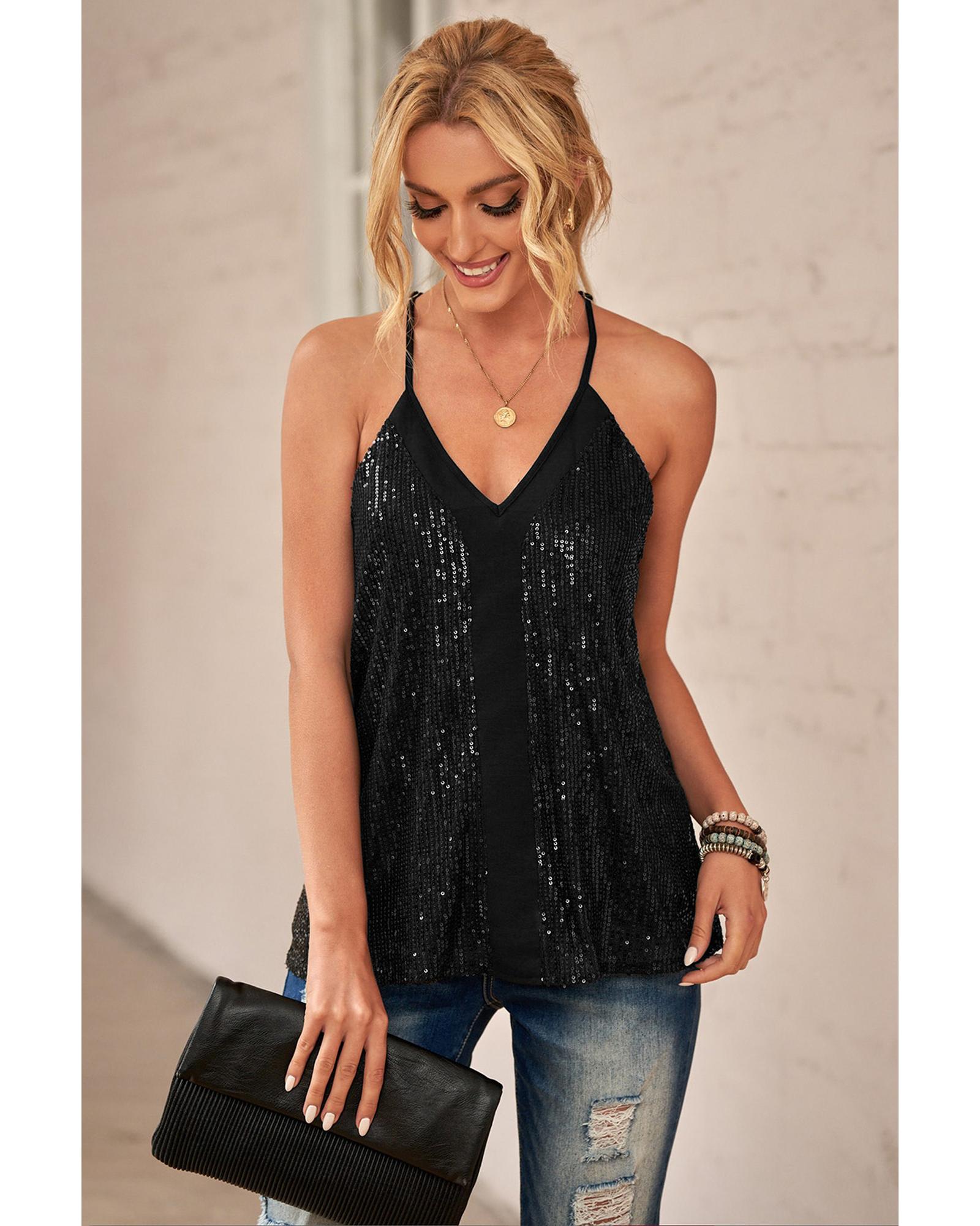 Azura Exchange Black Sequin Racerback Tank – S