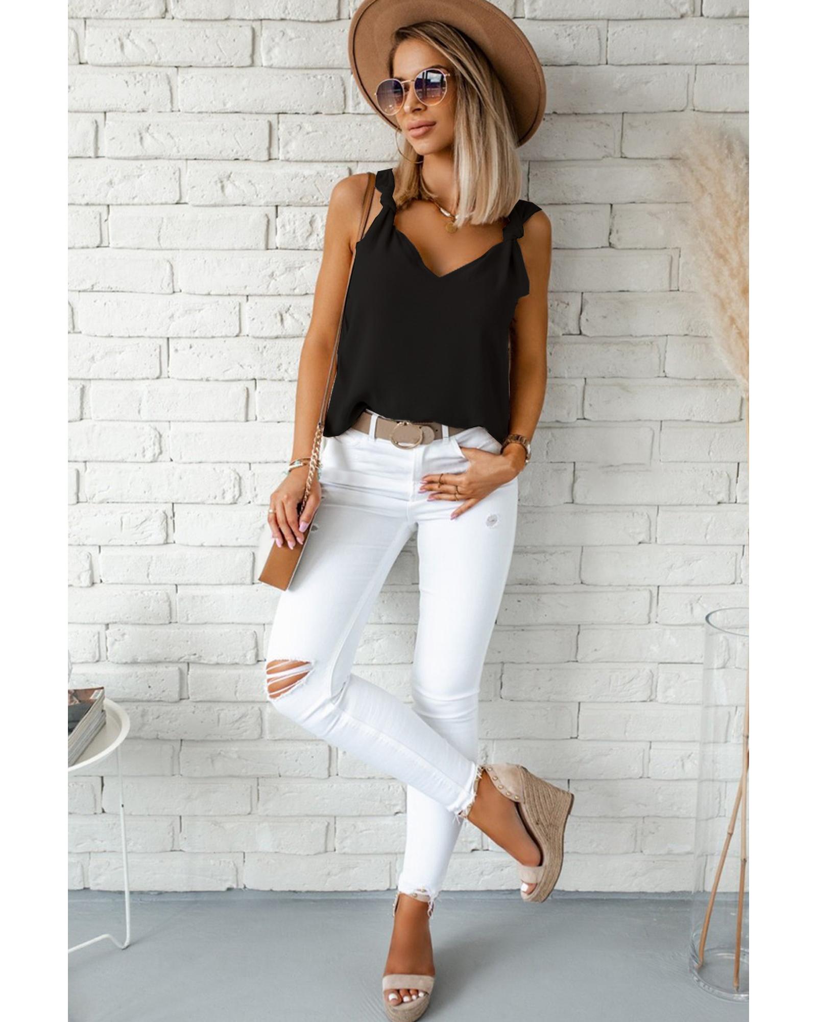 Azura Exchange Black V Neck Knotted Shoulder Vest – L