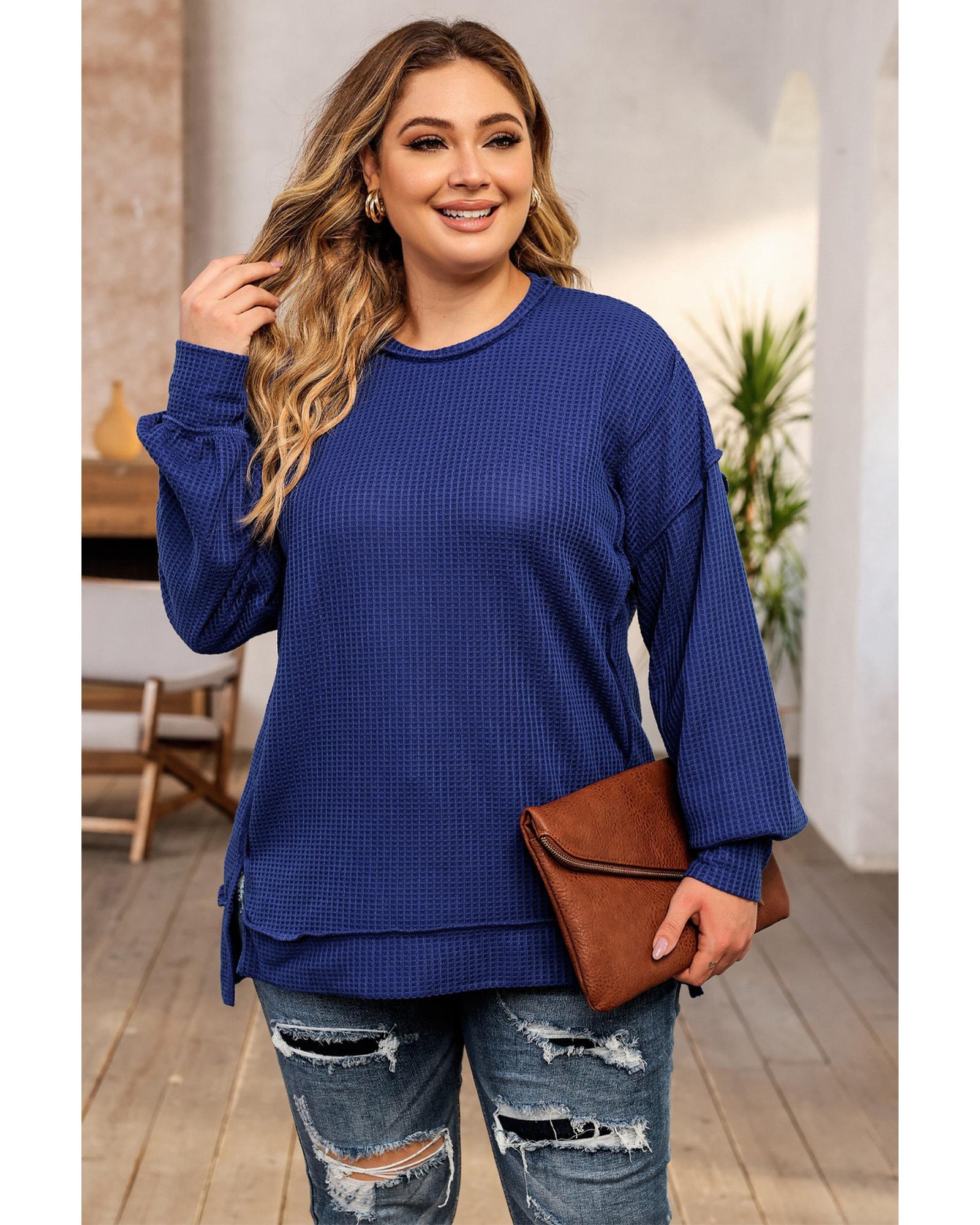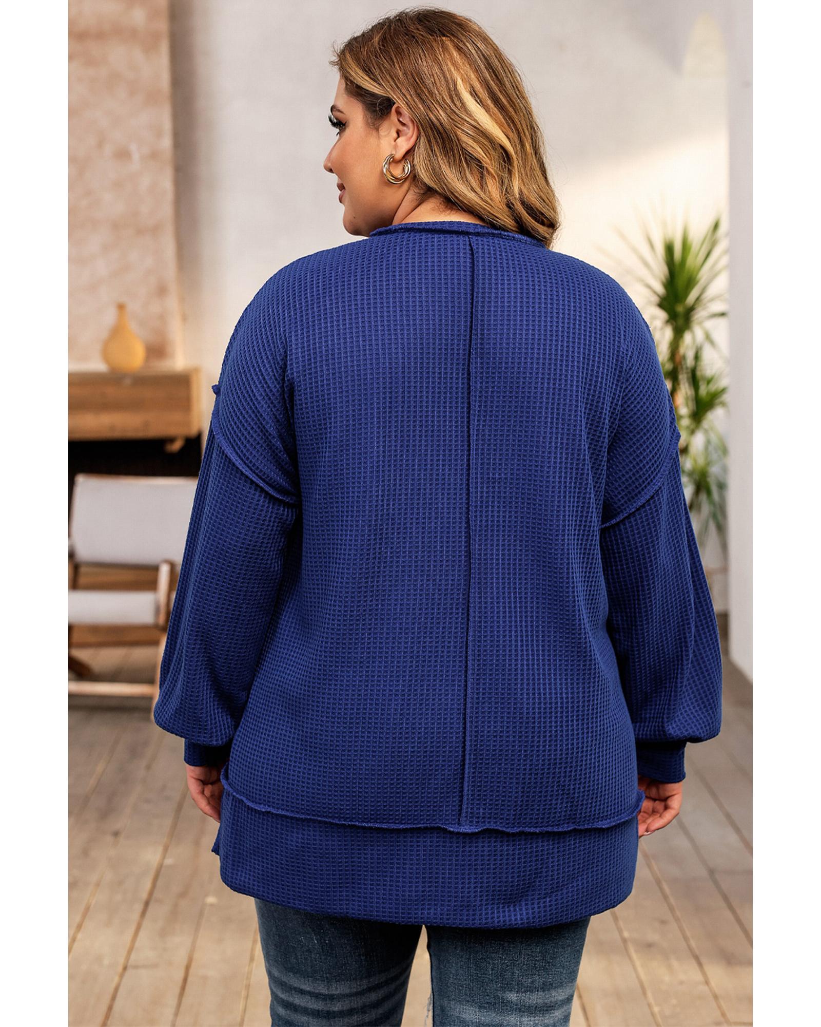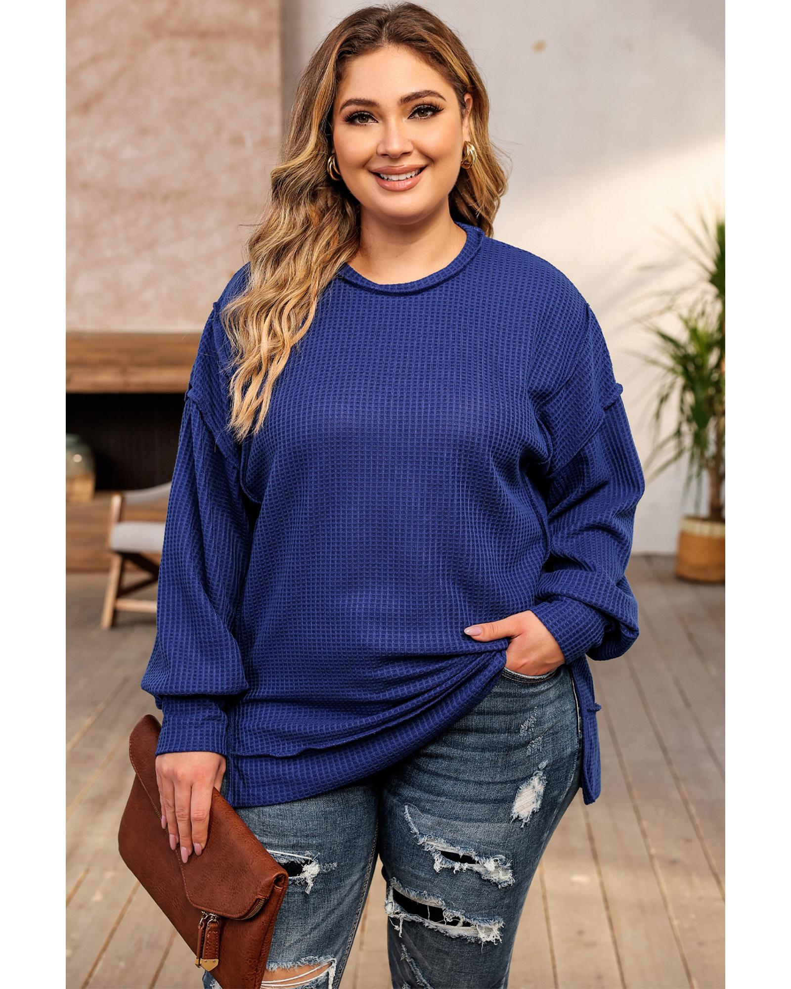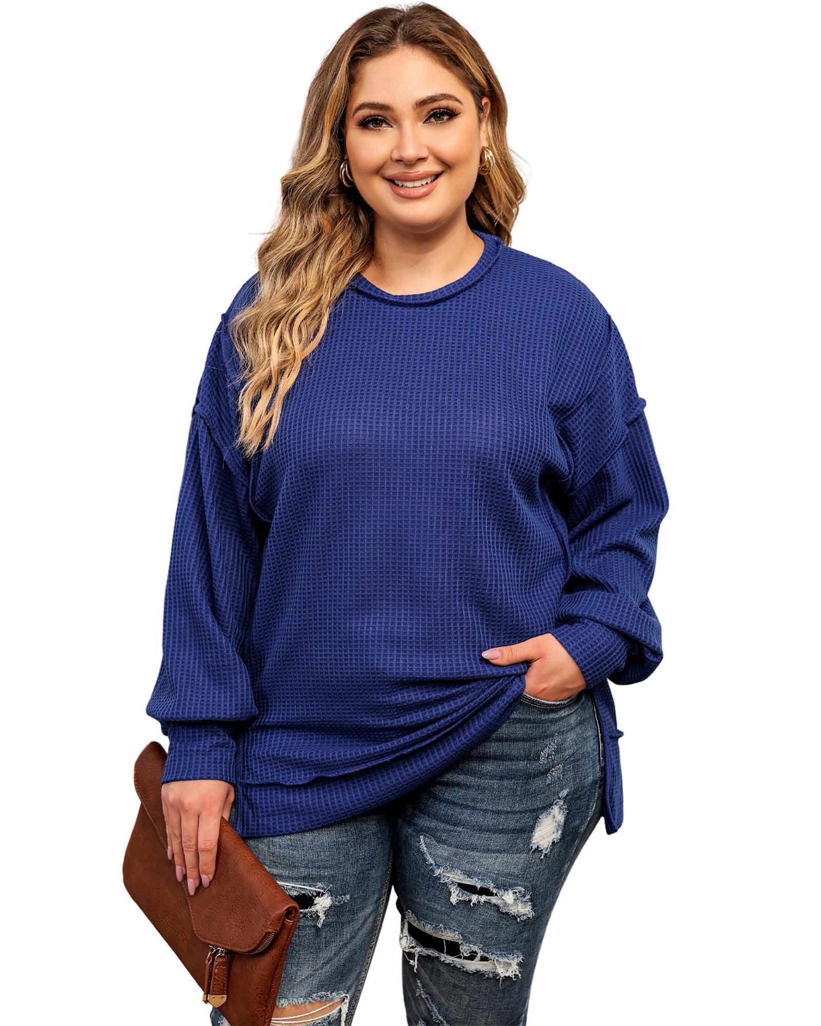 - Blue Plus Size Waffle Knit Oversized Exposed Seam Top