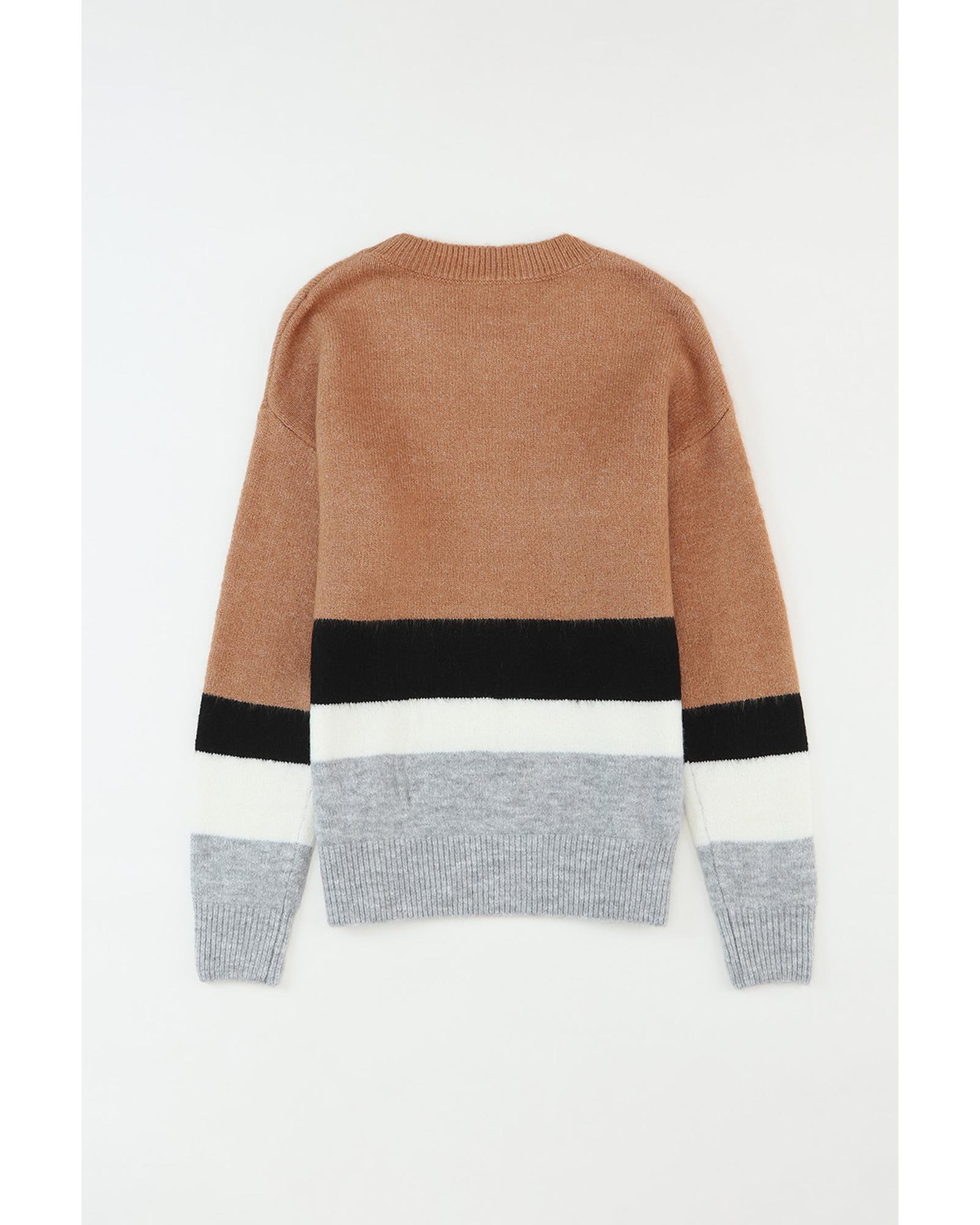 Azura Exchange Brown Color Block Striped Ribbed Knit Sweater – XL