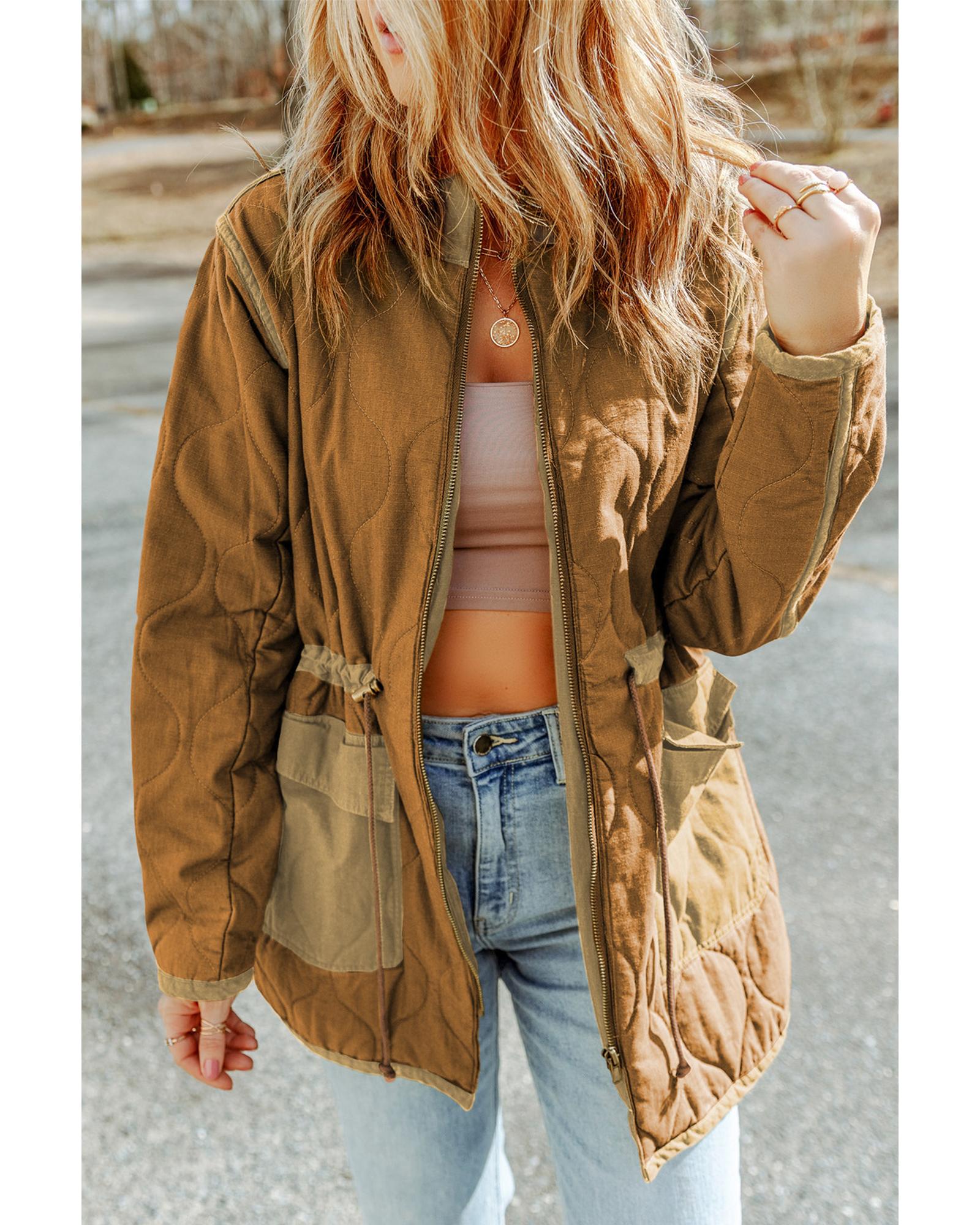 Azura Exchange Brown Stitching Quilted Drawstring Jacket – M