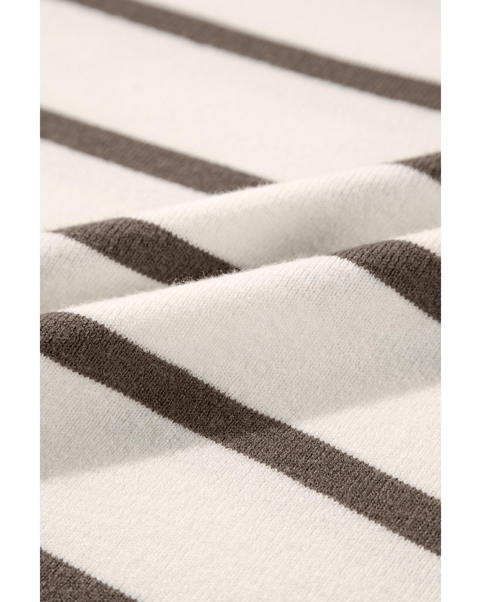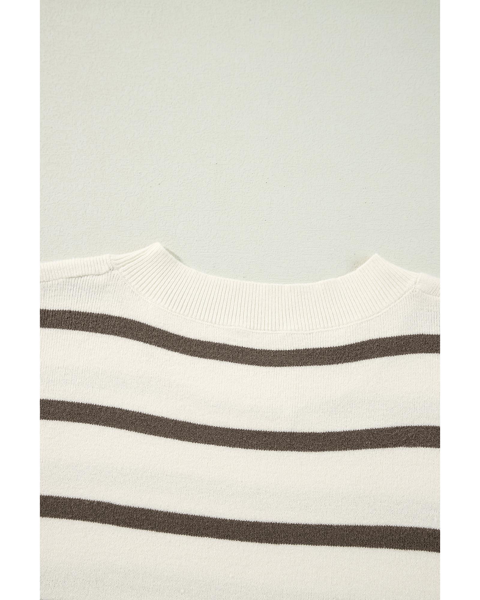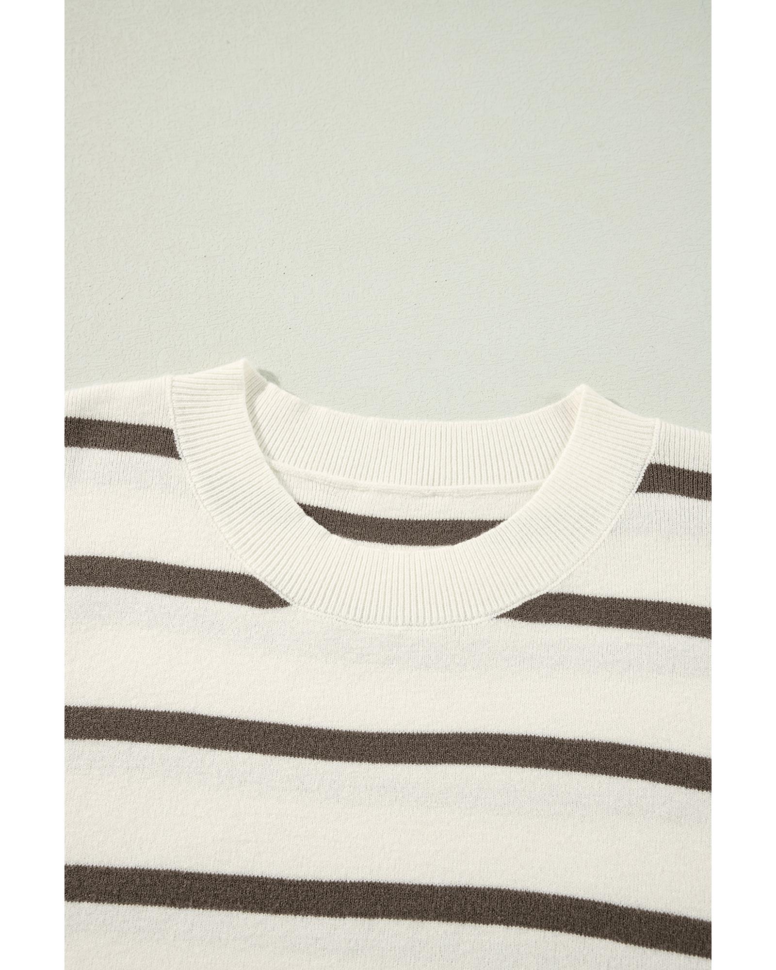 Azura Exchange Brown Stripe Side Slits Crewneck Short Sleeve Sweater Tee – L
