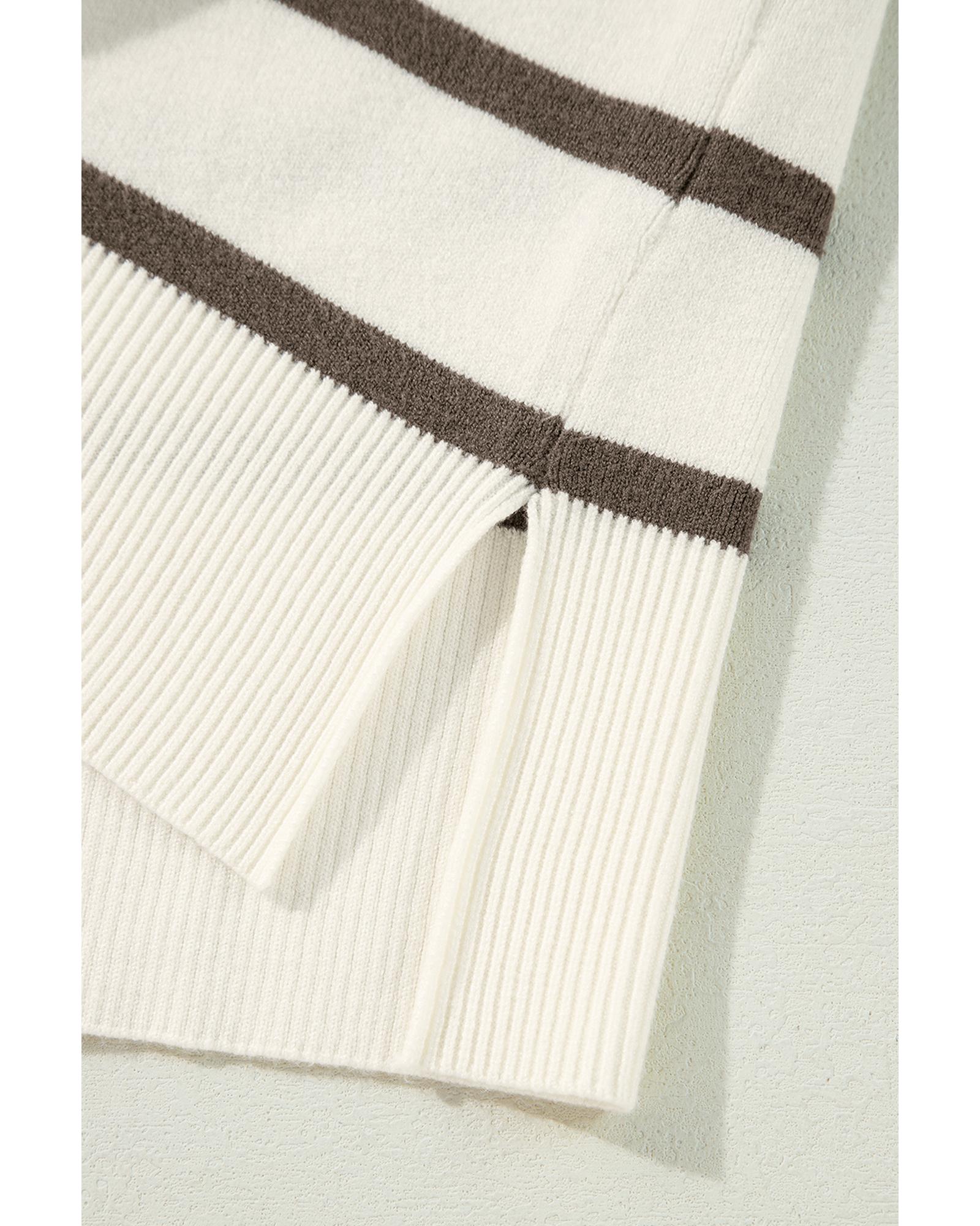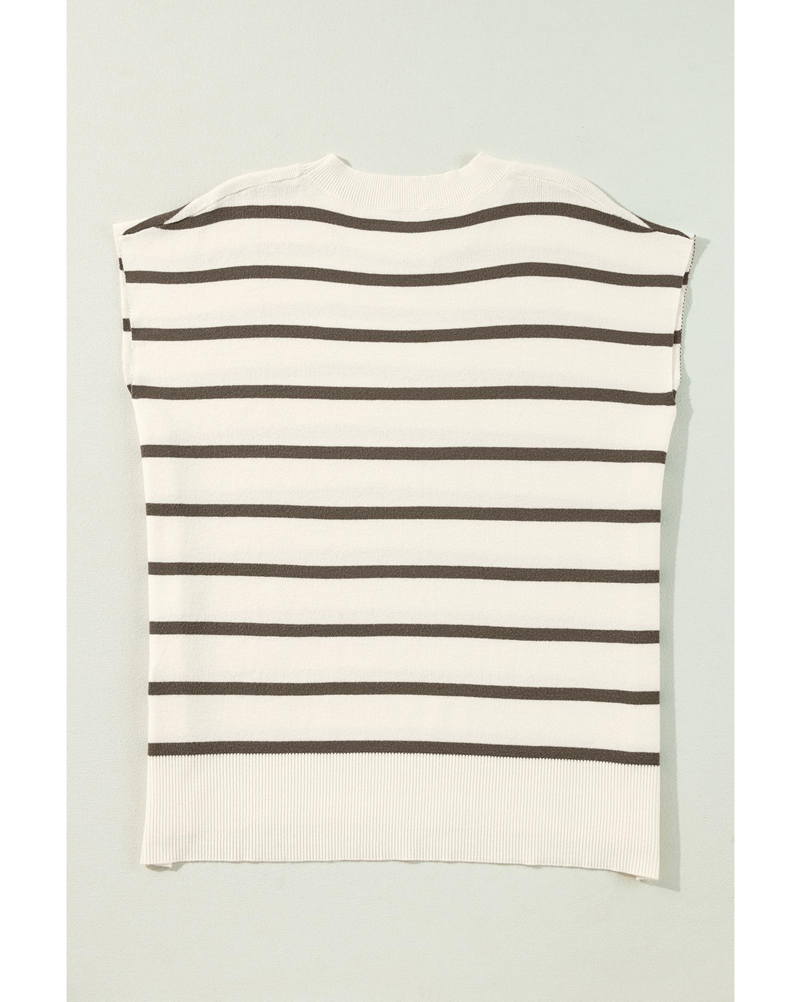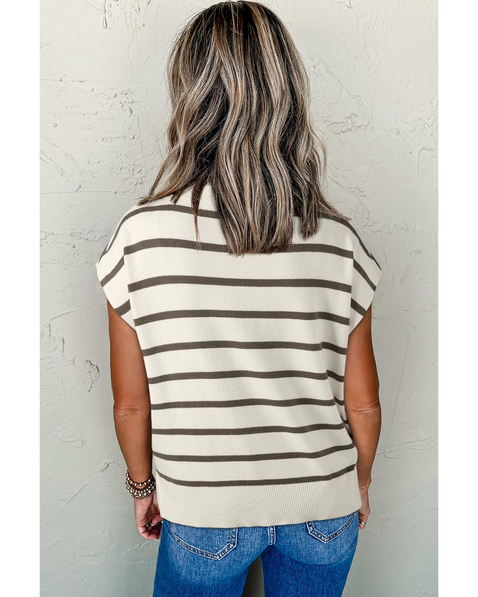 Azura Exchange Brown Stripe Side Slits Crewneck Short Sleeve Sweater Tee – L