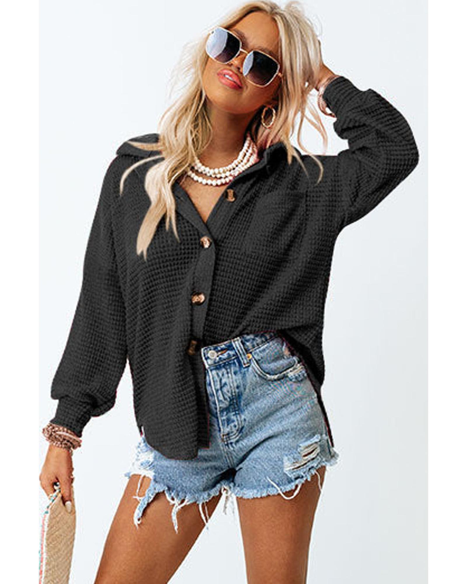 Azura Exchange Button Up Waffle Knit Casual Shirt – L
