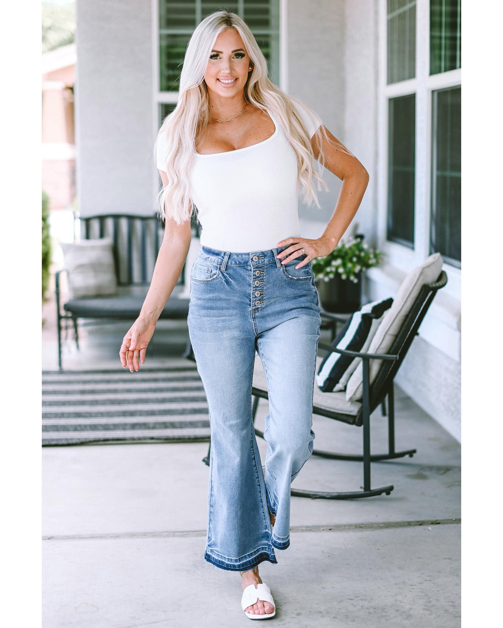 Azura Exchange Buttoned Distressed Flared Jeans – 14 US